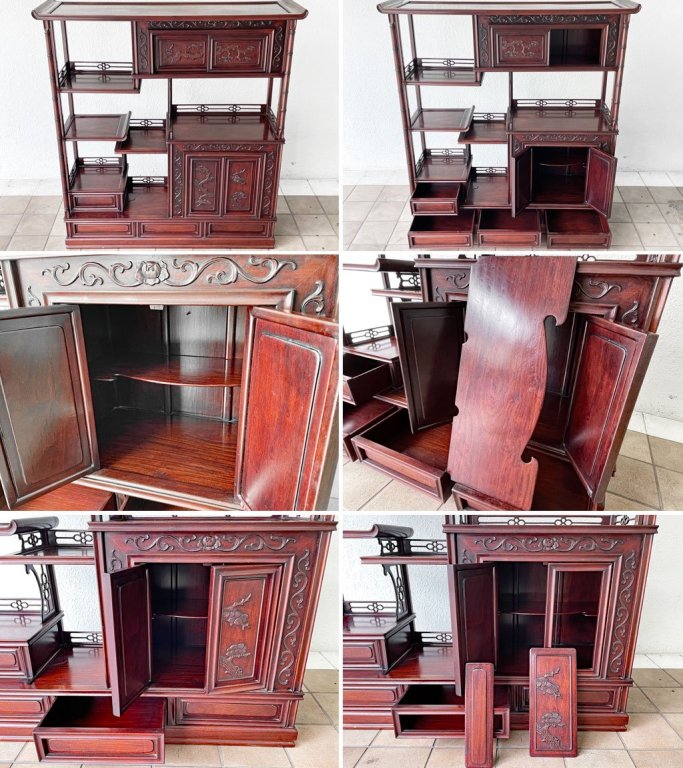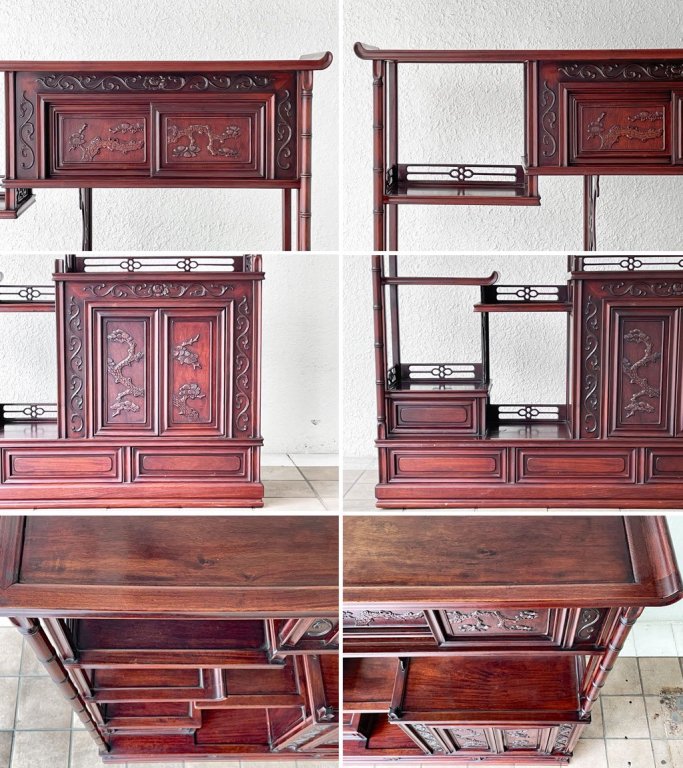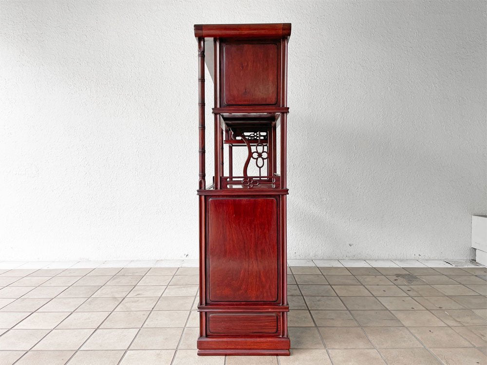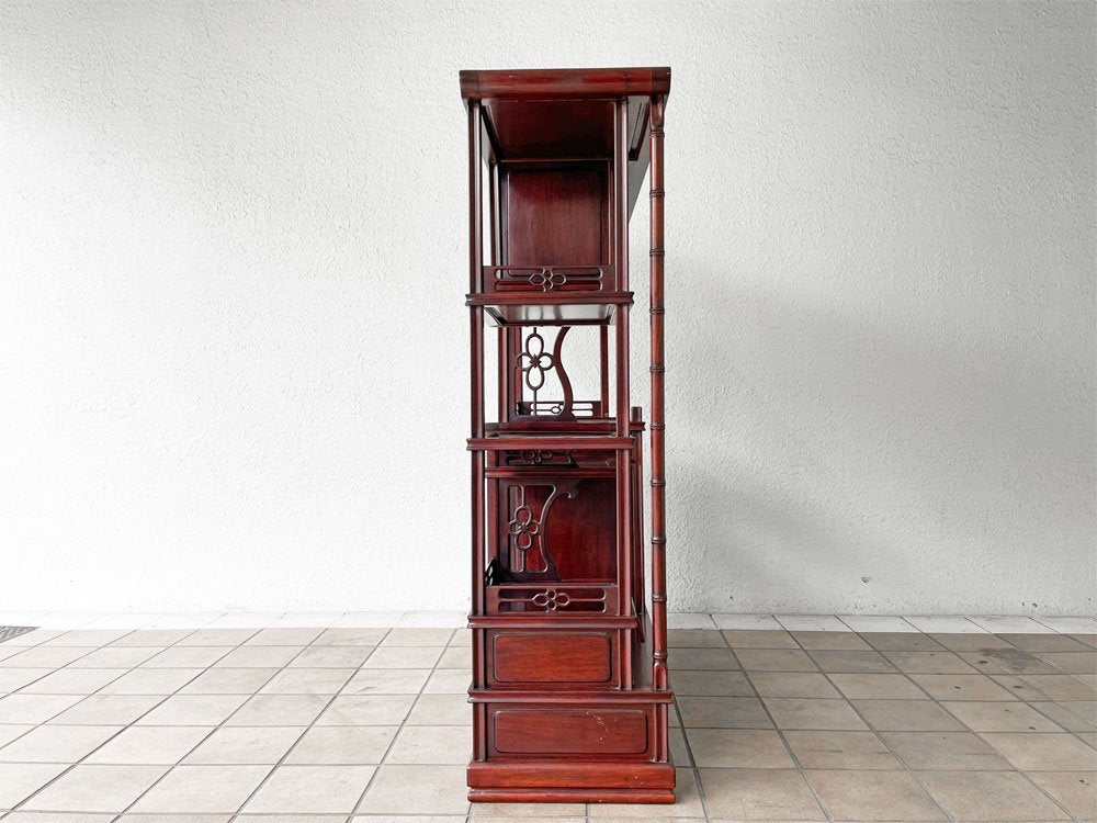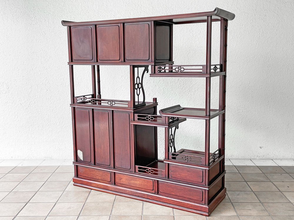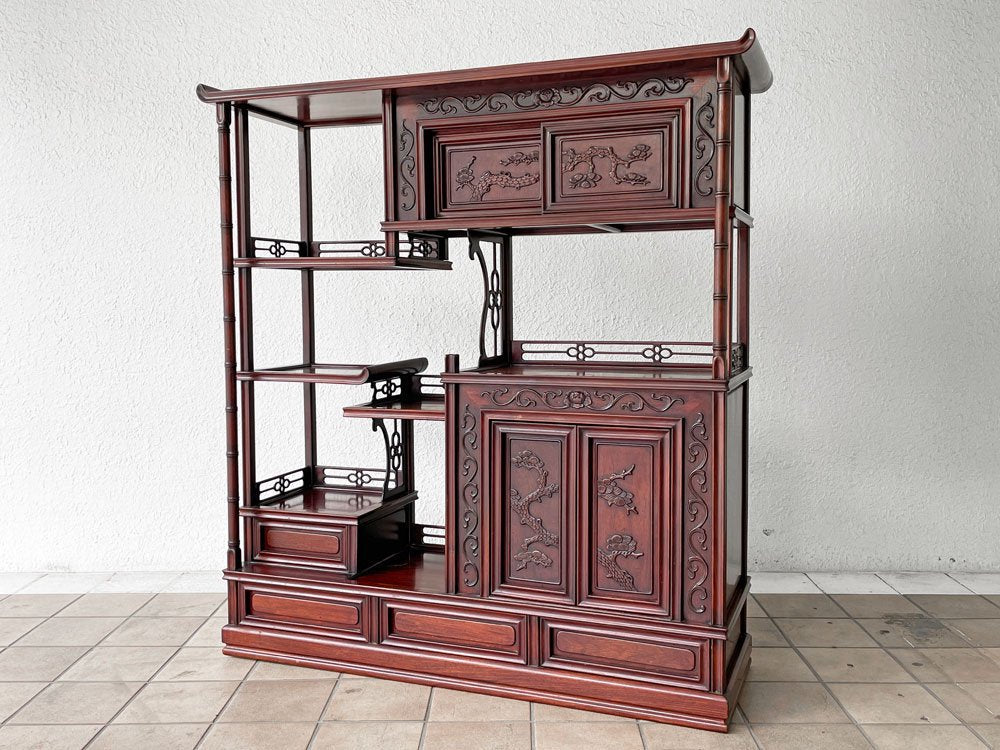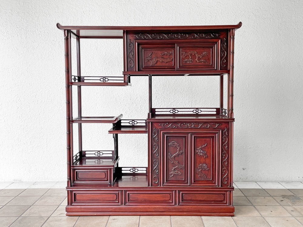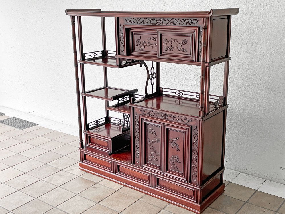 唐木家具 茶棚 違い棚 飾り棚 オープンシェルフ 飾り彫り 伝統工芸 銘木家具 ビンテージ ◇