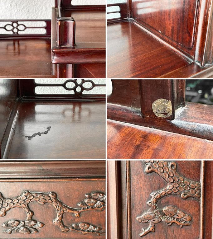 唐木家具 茶棚 違い棚 飾り棚 オープンシェルフ 飾り彫り 伝統工芸 銘木家具
