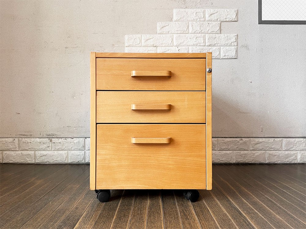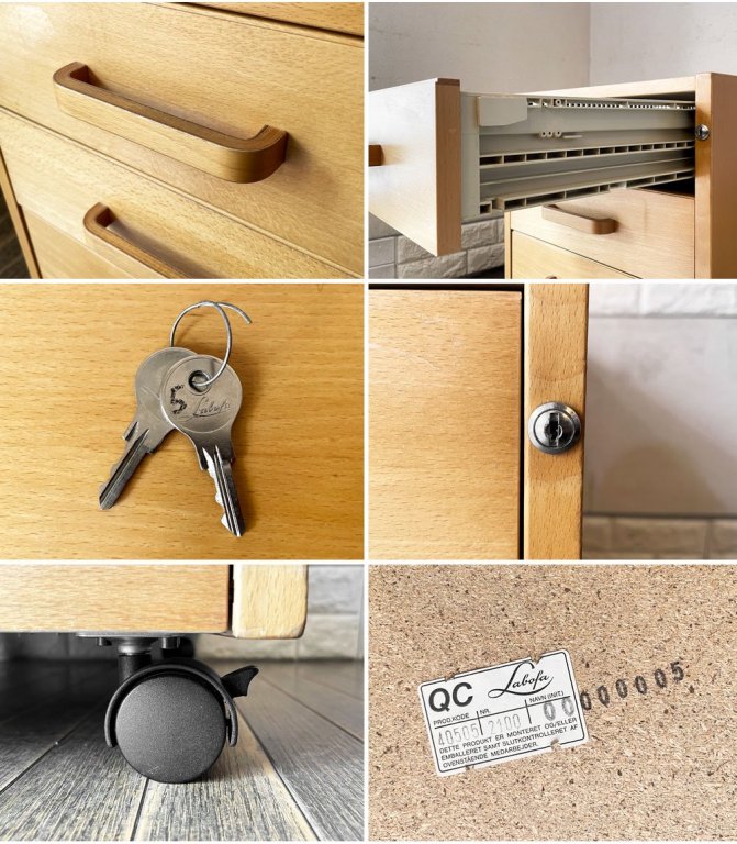 ラボファ Labofa ビーチ材 デスクキャビネット ワゴン ファイリングドロワー 3段 ペントレー&ファイル収納&鍵付 デンマーク製 北欧家具 ◎
