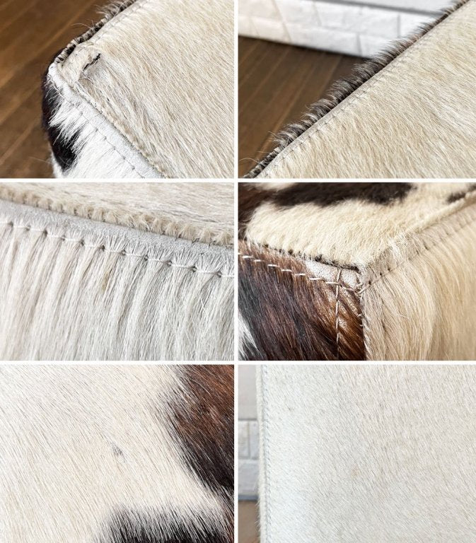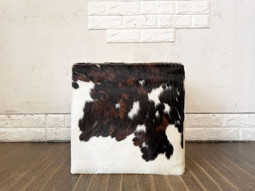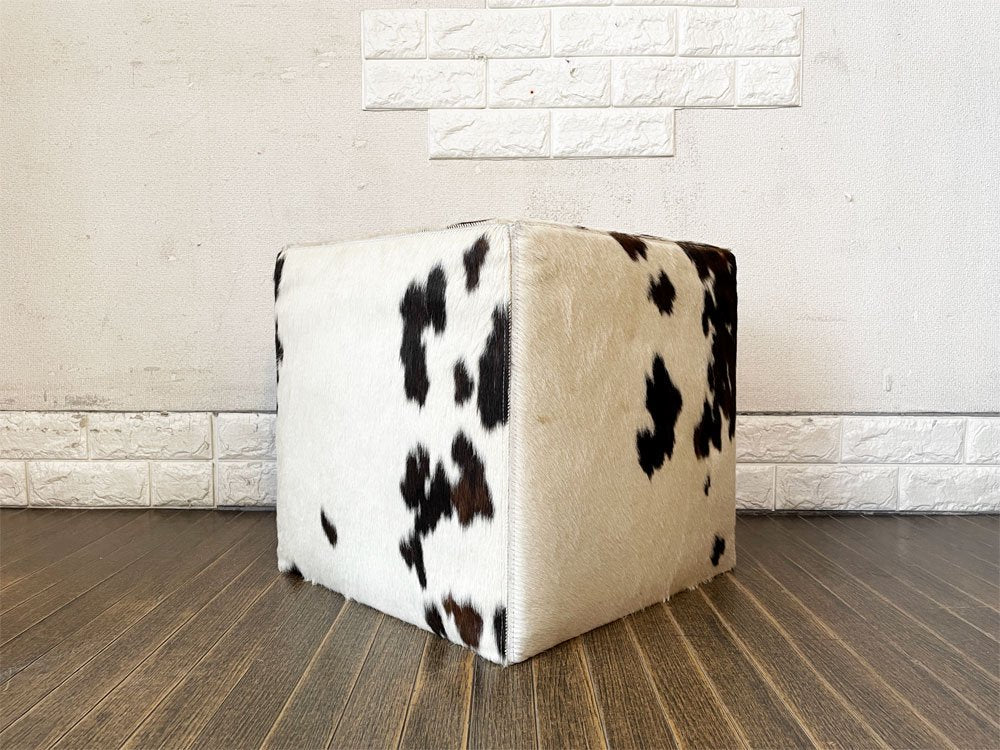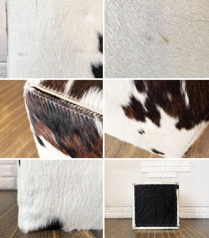 5面とも異なる表情をお楽しみ頂けるハラコを使用したスクエア型のスツールです。