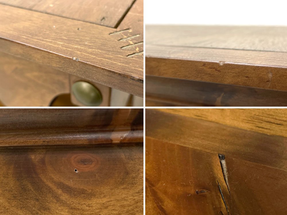 使用に伴擦れや傷、軽微な打痕、割れがございます。また、背板に取り切れない染み汚れが見受けられます。その他ガタツキ等の目立つ様な大きなダメージは無く、これからも安心してご使用頂けるコンディションを保っております。