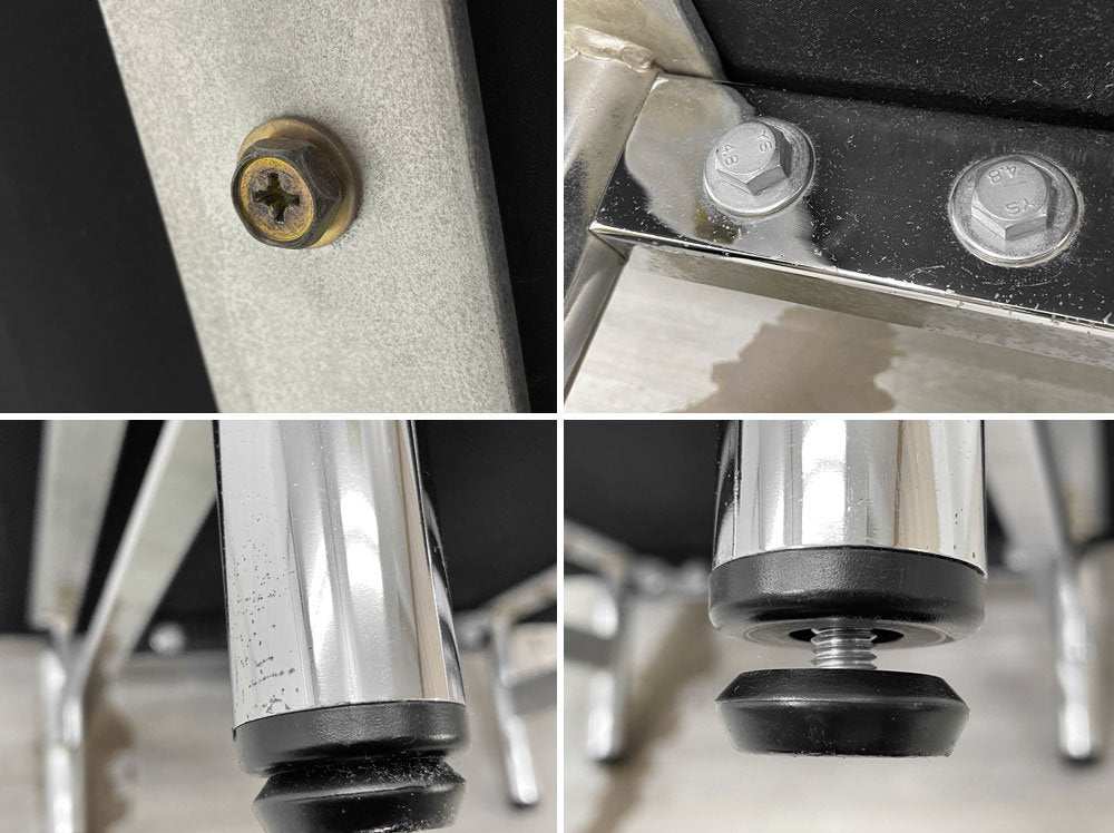 クローム仕上げのフレームは、前後のみ座面近くに寄せている事で視界に入りにくくよりシンプルな印象に。