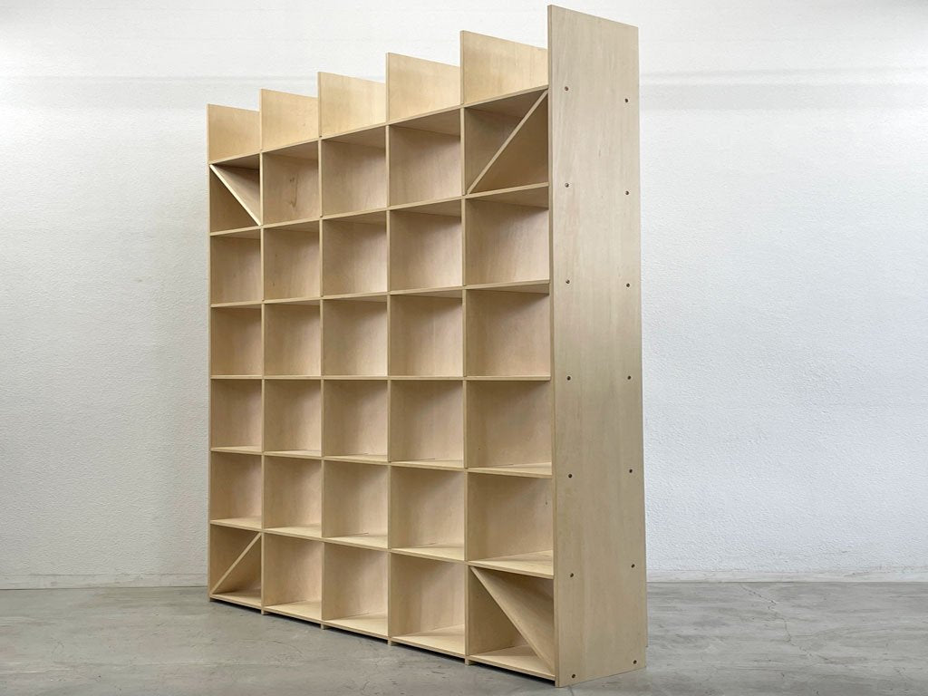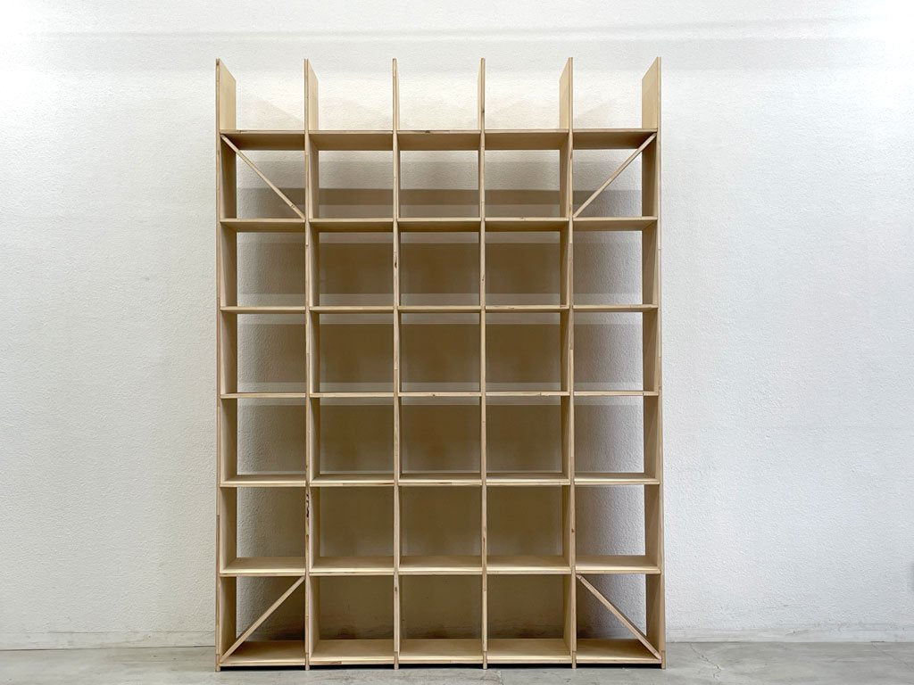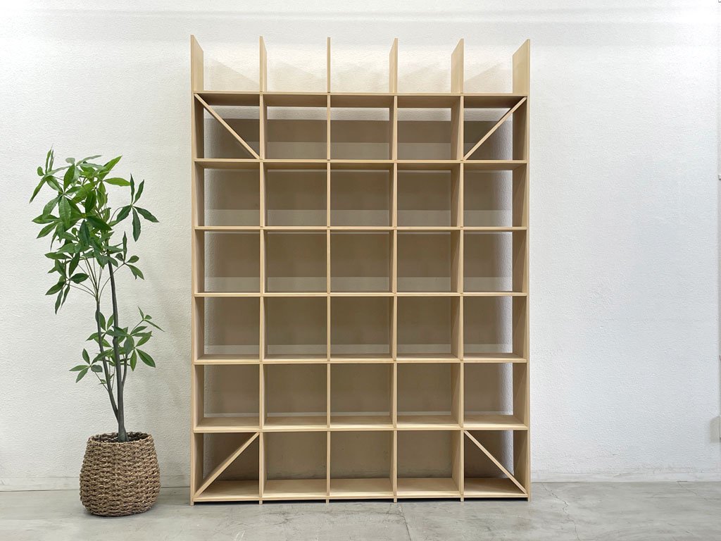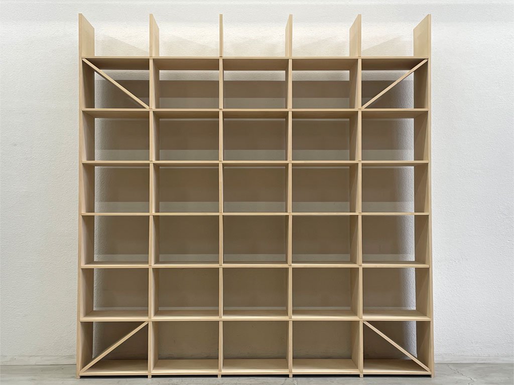 マルゲリータ margherita シェルフ Shelf シナ材 壁一面の本棚 縦7コマ横5コマ オープンシェルフ 書棚〓