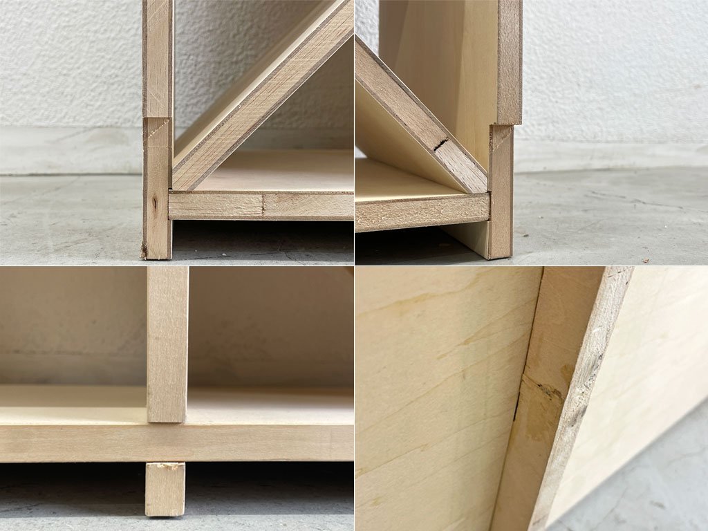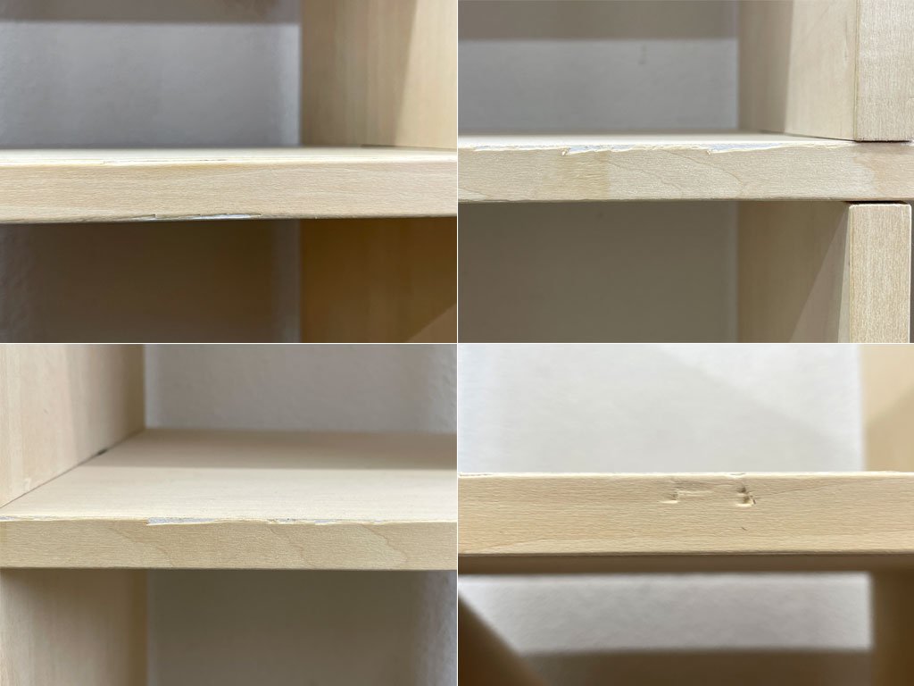 シェルフ前面に使用に伴う突板の剥がれ、へこみや細かなキズがございますが、ご使用には問題ないダメージです。