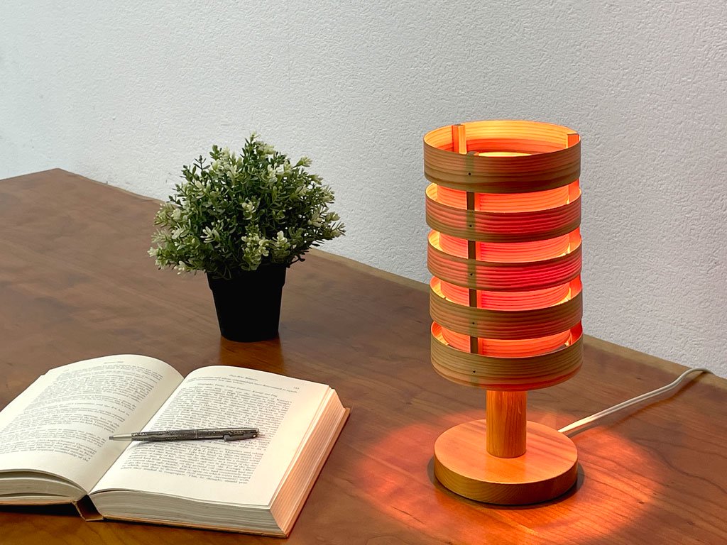 薄くスライスされたパイン材から、包み込まれる様な優しい光が透過する巨匠ハンス・アウネ・ヤコブソンの名作『 ヤコブソンランプ 』。