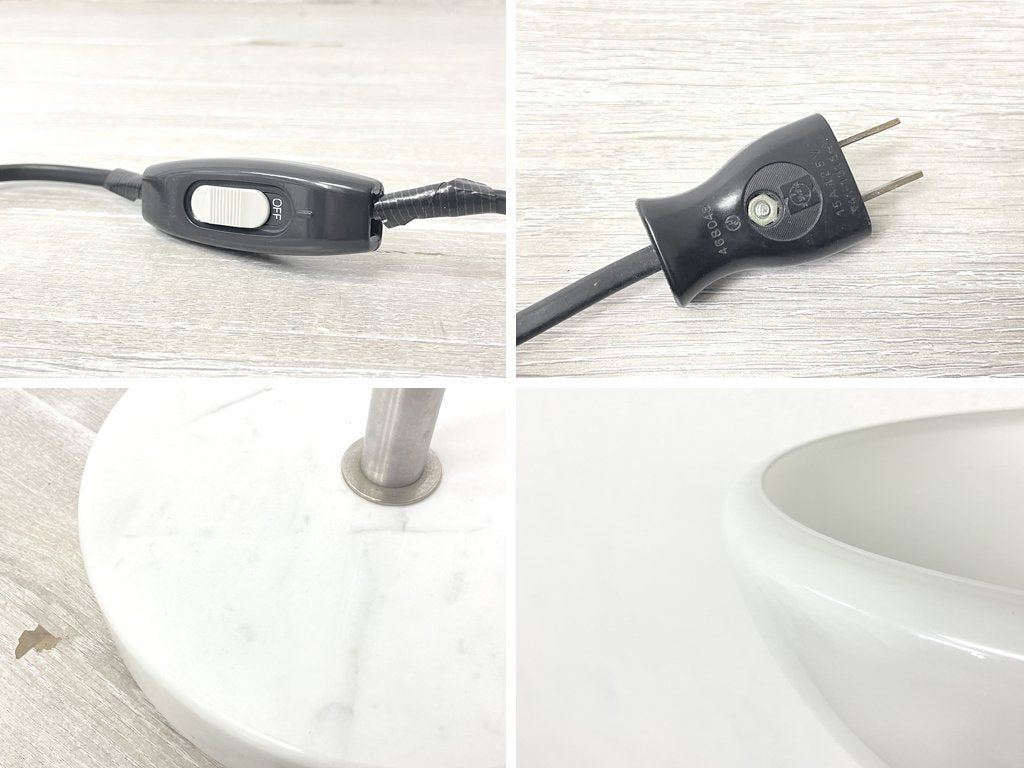 イタリアの特産である大理石、血の通ったような光を損なわないようシェードを薄手に仕上げるムラーノ職人の技術、そして光の投影具を植物になぞらえる愛嬌のあるデザイン。世界のデザインを牽引するイタリアのポテンシャルを強く感じさせる名品です。