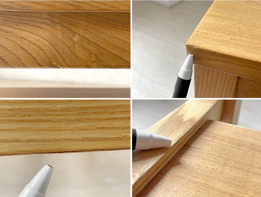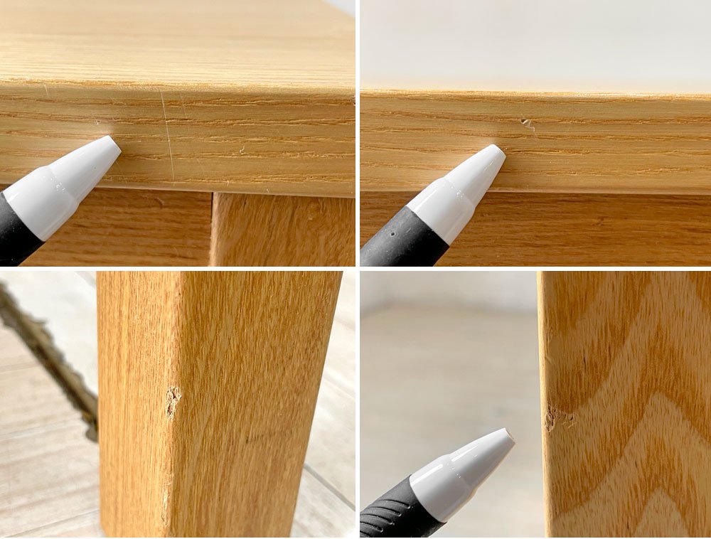 使用に伴い、傷や擦れ、打痕や僅かな突板の浮きが見受けられますが、大きく目立つダメージはございません。その他、使用に問題となるダメージも無く、USED品として概ね良好なコンディションを保っております。