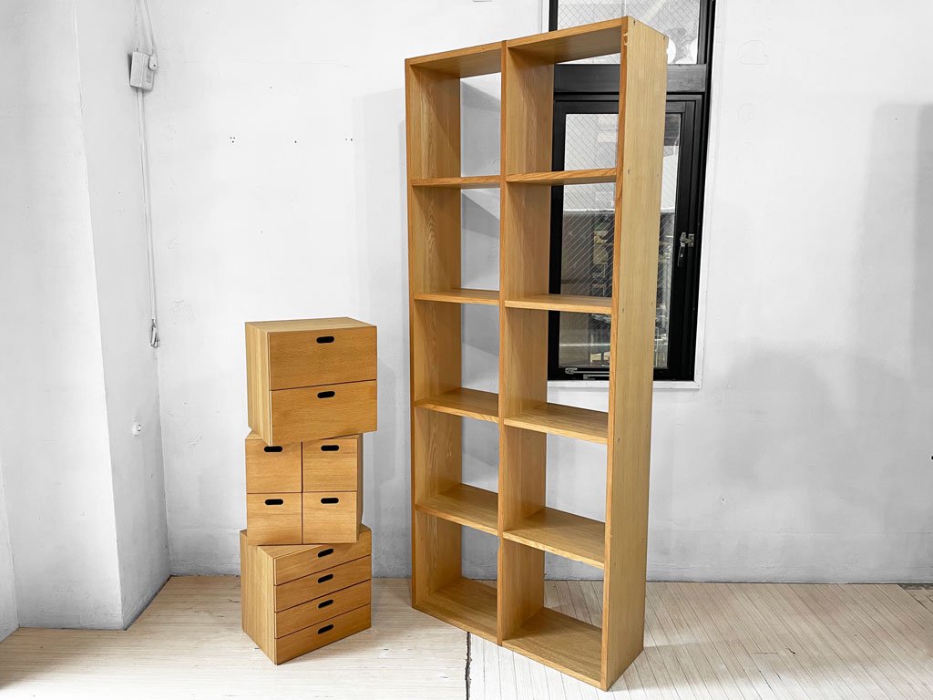無印良品 MUJI スタッキングシェルフ 5段2列 オーク材 オープンシェルフ スタッキングチェスト付き 合計定価 \54,870- ★