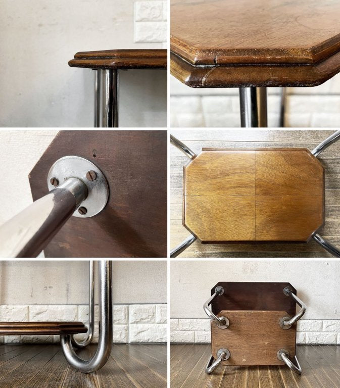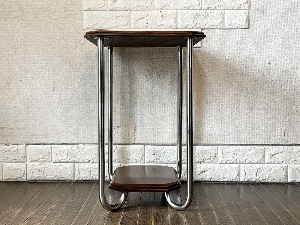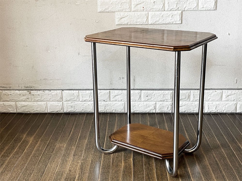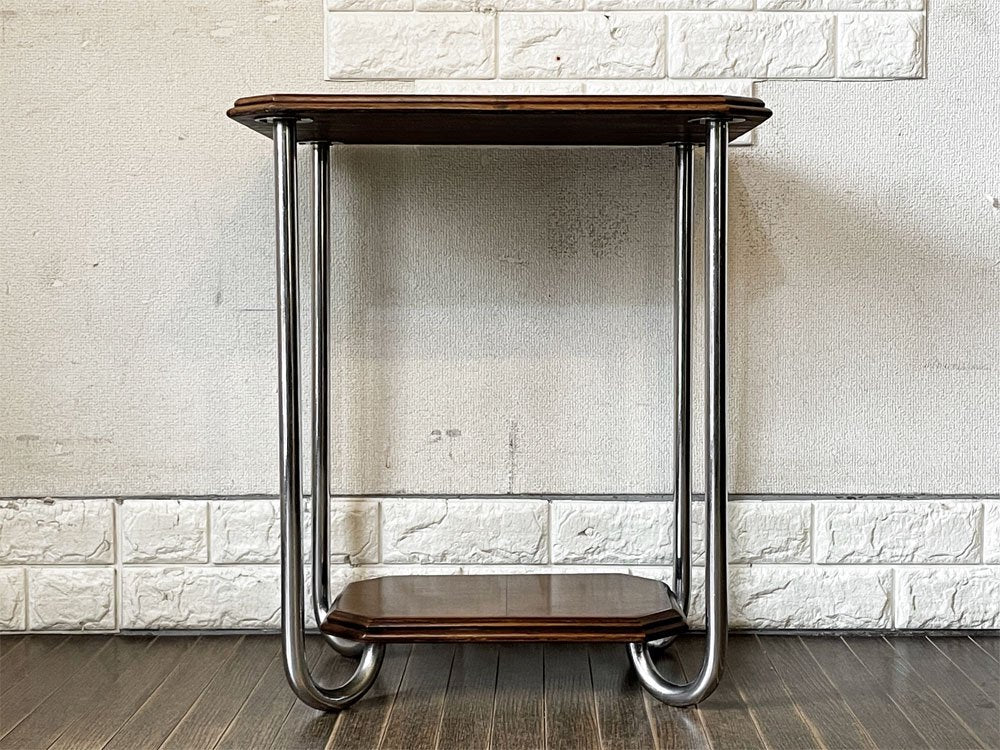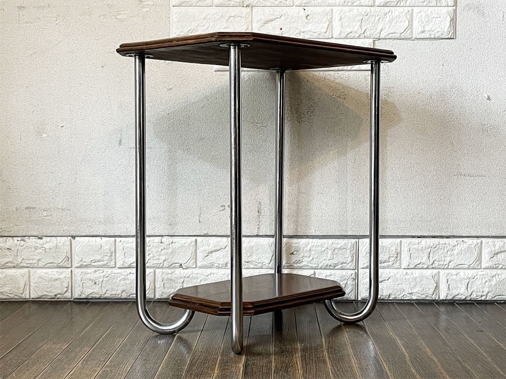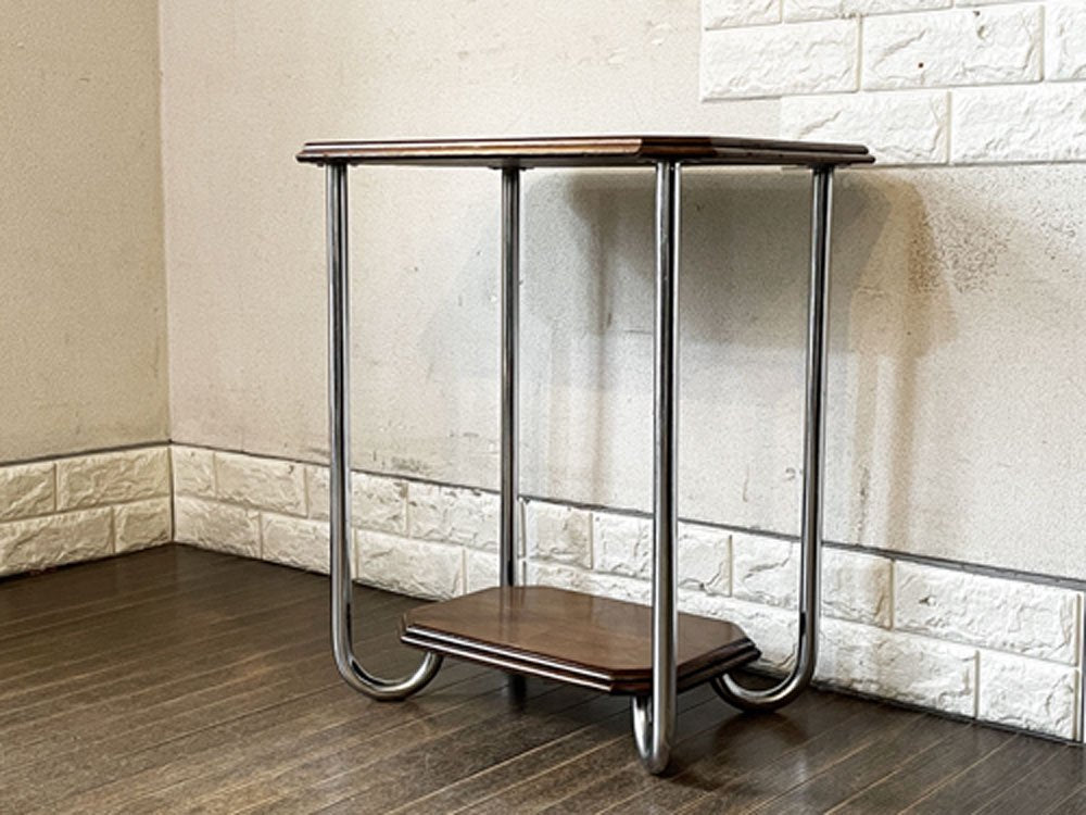 ヨーロピアンビンテージ European Vintage ウォールナット×スチール サイドテーブル 鋼管フレーム アールデコ バウハウススタイル モダンデザイン ◎