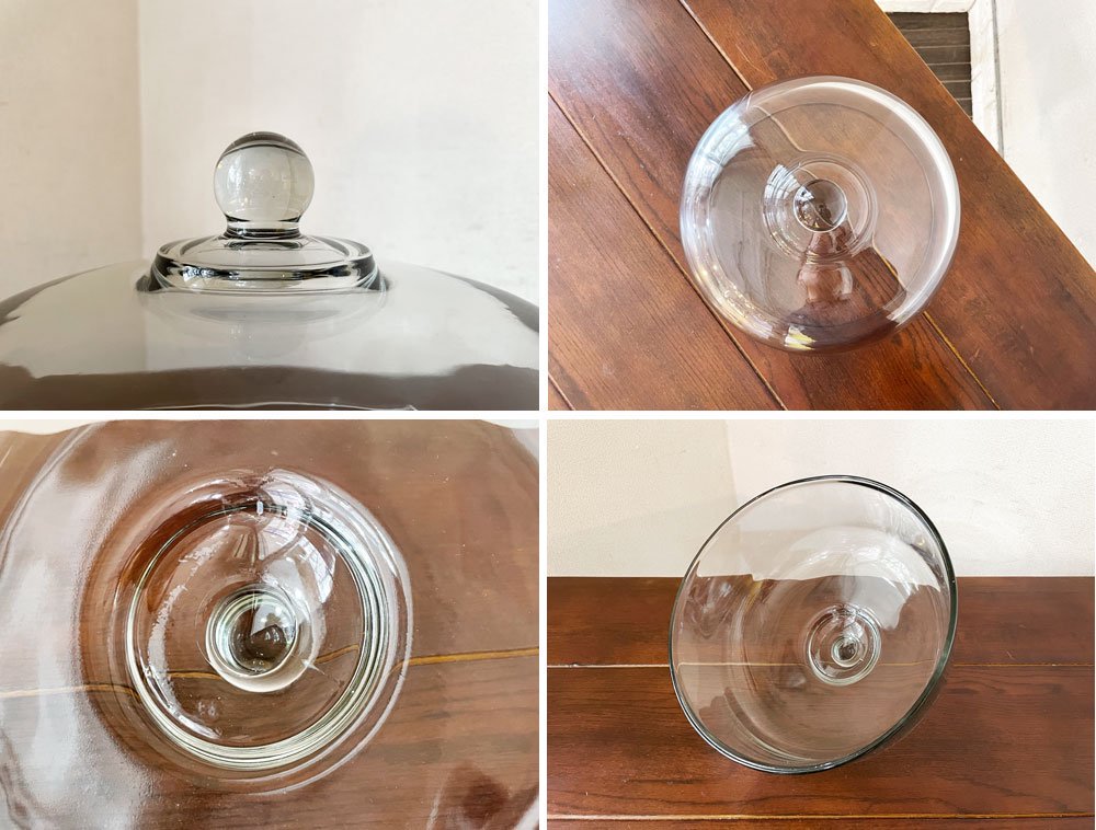 気泡などの製造痕が残るクリアガラスと控えめなエンボス模様がレトロな雰囲気を醸し出すケーキドーム。中に入れたスイーツをより美味しそうに見せてくれるアイテムです。ぜひ日常使いとしてお迎えください。