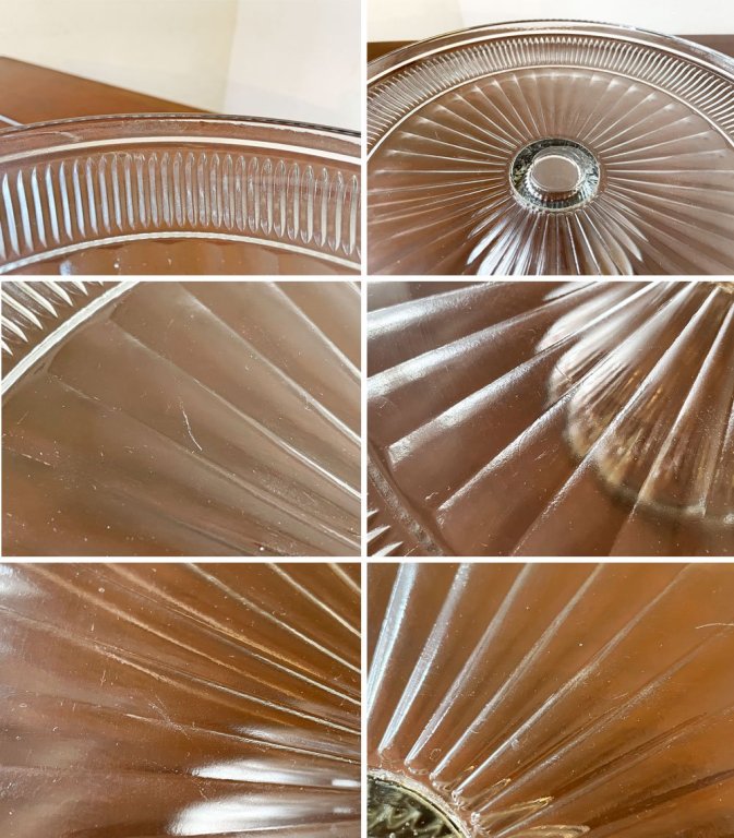 使用に伴う擦れや小傷のほか、ガラスの揺らぎや気泡などが全体に見受けられます。また一部製造痕と思われる傷はございますが、割れや欠けといった目立ったダメージはございません。中古品としましては概ね良好なコンディションで、これからも気持ちよく実用いただけます。