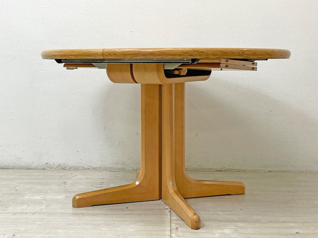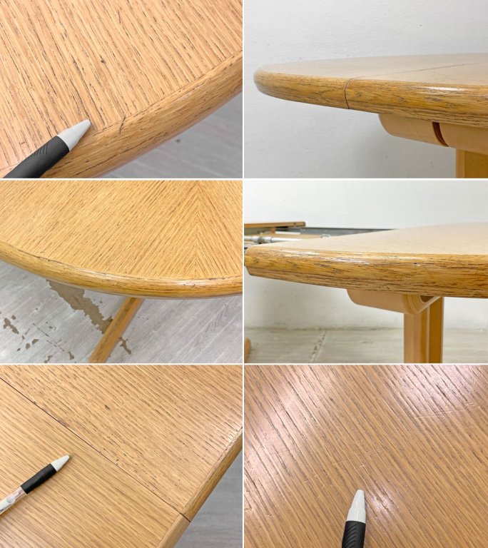 また、脚部と天板の連結部にはカーブが美しいプライウッド。エクステンションの際の開閉は長い年月が経った今でもスムーズに行えるなど、随所に職人の高い技術が伺えます。