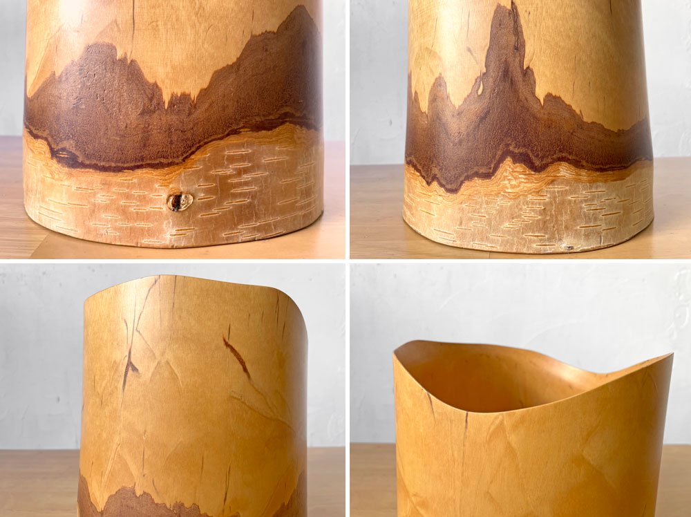 こちらは福永浩太さんの代表作、北海道で育った白樺の木を刳り貫いて作られた作品です。