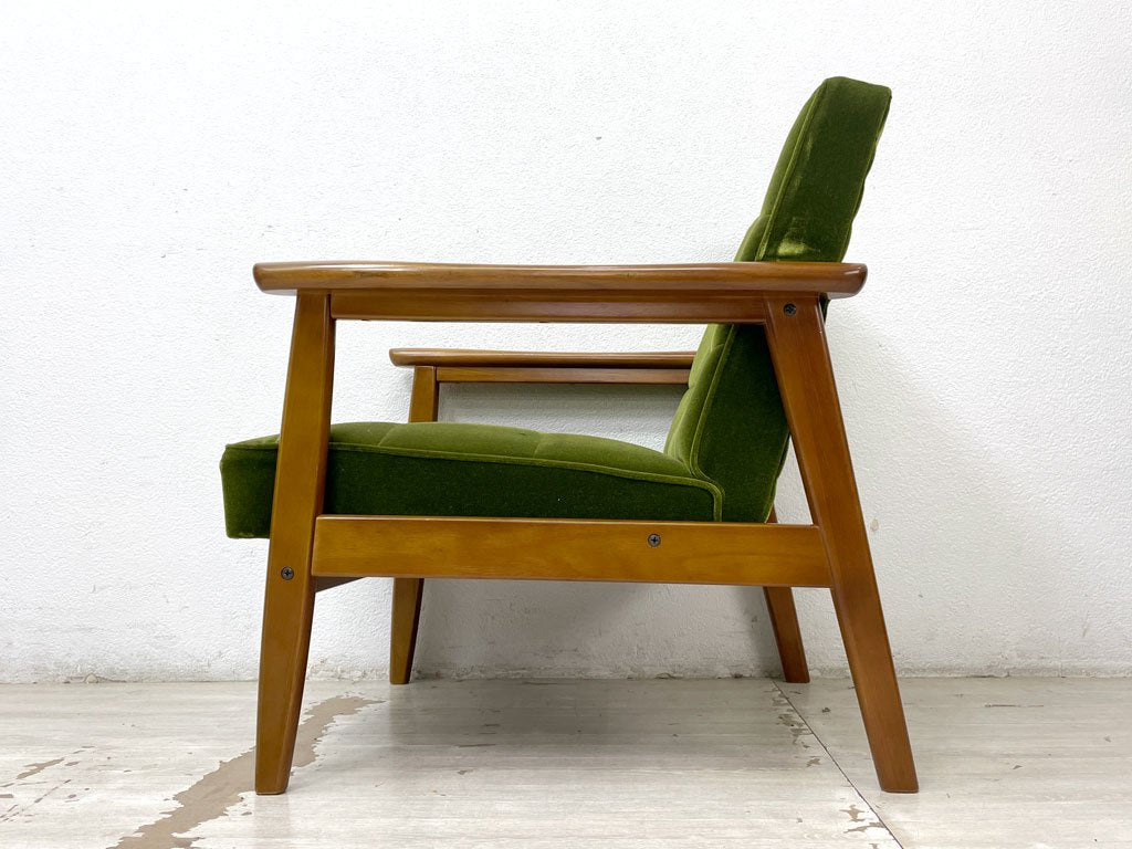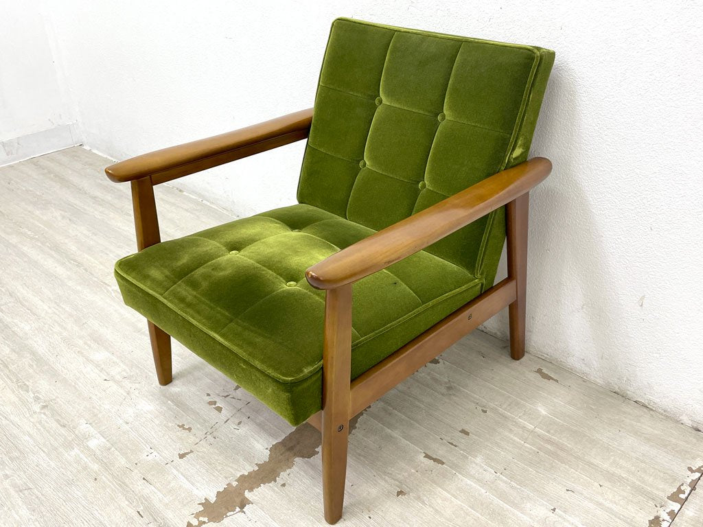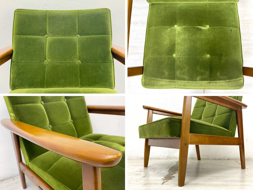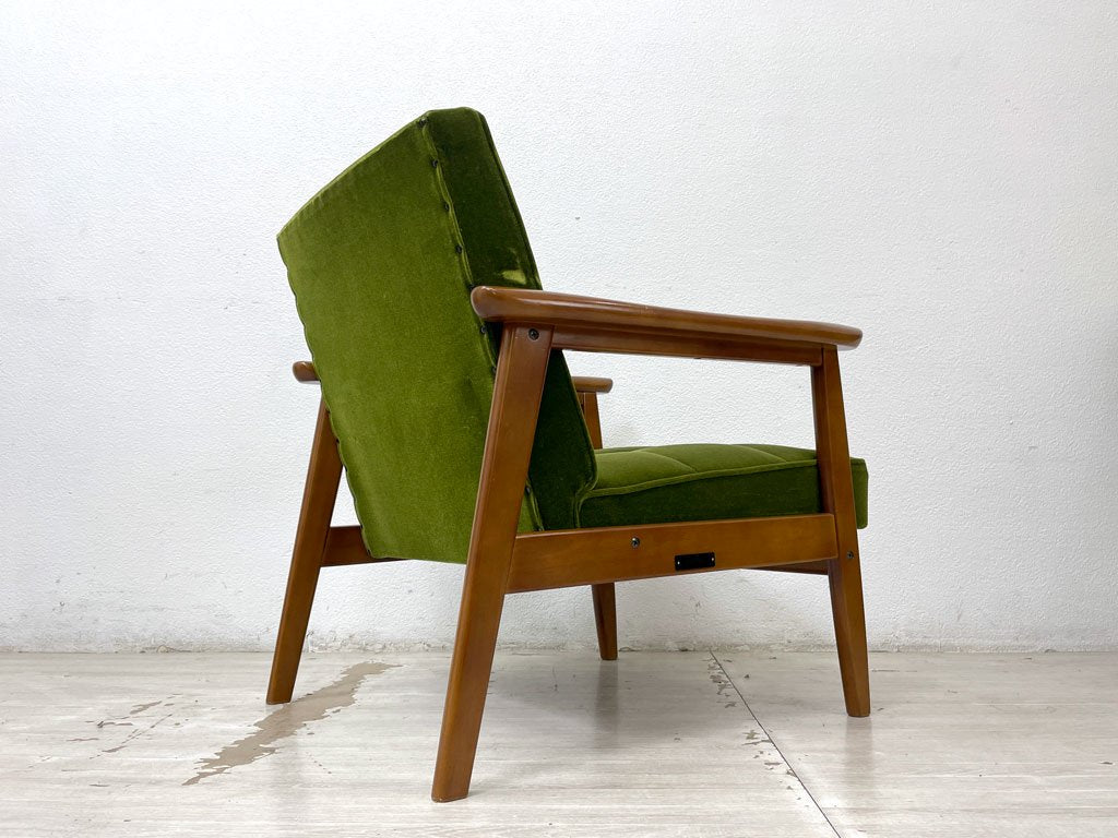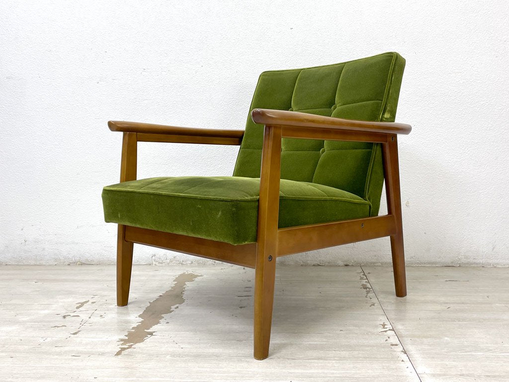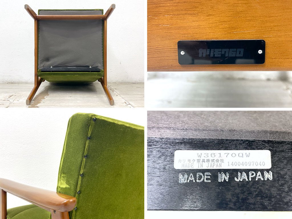 カリモク60 Karimoku60 Kチェア 1シーター ソファ モケットグリーン 60's レトロモダン ミッドセンチュリー 定価¥64,350- B ●