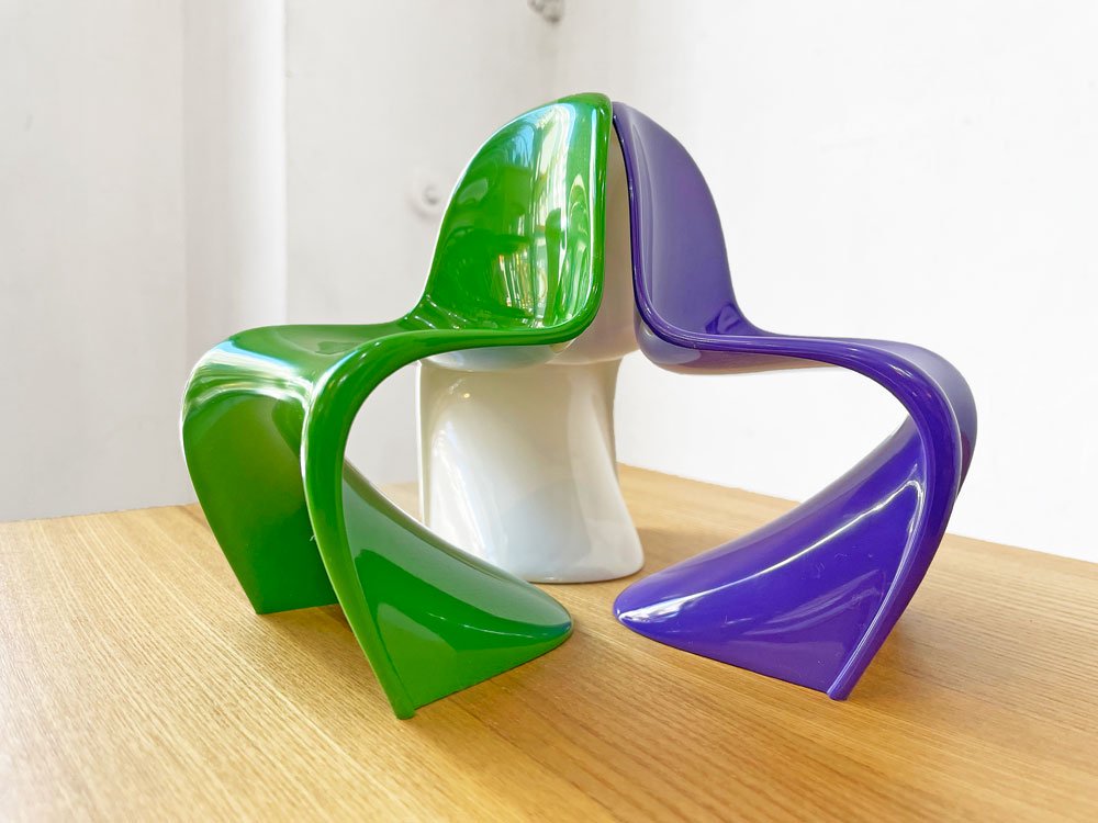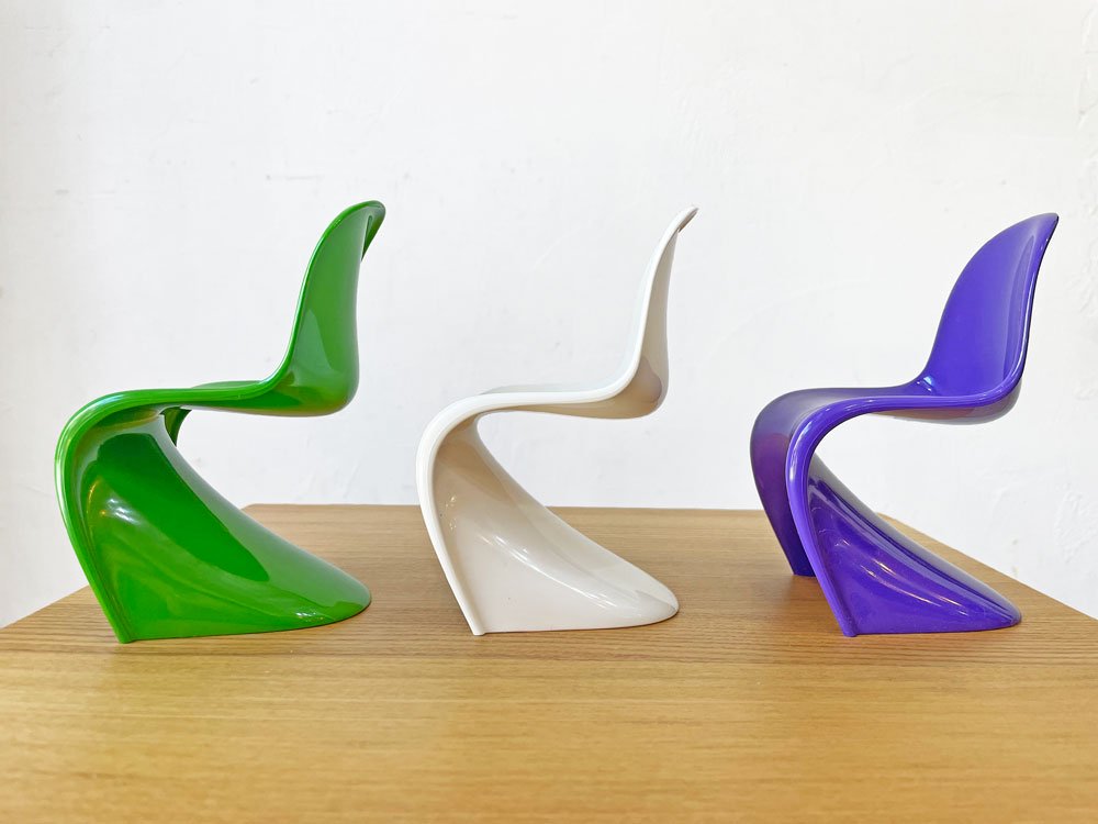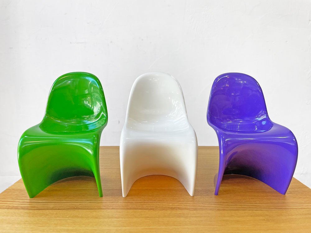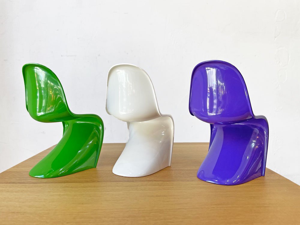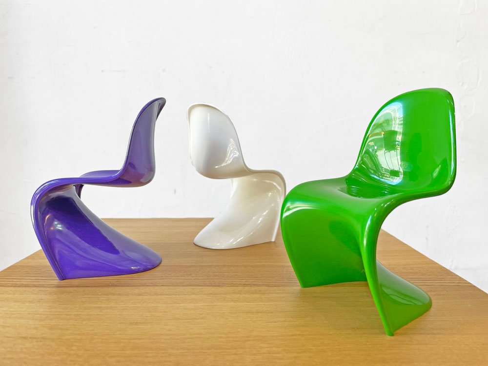 巨匠Verner Panton(ヴェルナー・パントン)により1960年に発表された、FRPを使用した世界初の三次元一体成型チェア「パントンチェア」をミニチュアサイズで楽しめる逸品。