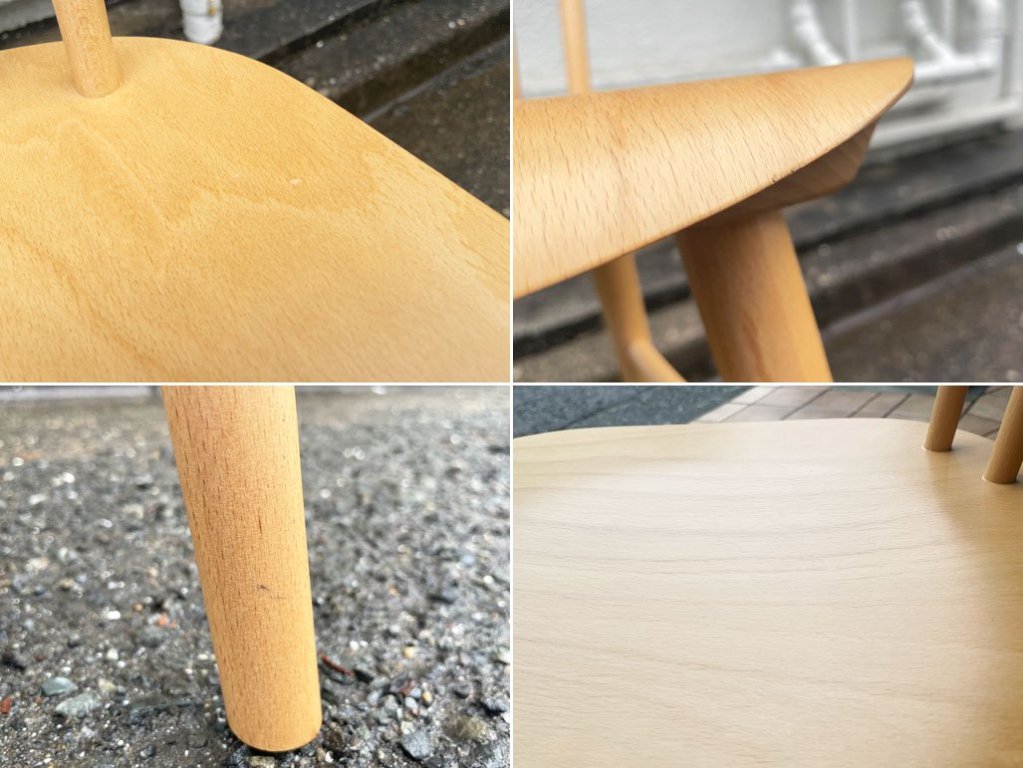 使用に伴い座面には手で触れると分かる程度の軽微な突板の凹凸、その他フレームに細かな擦れや打痕が数か所見受けられますが、大きく目立つダメージはございません。ガタツキや割れ等使用上問題となるダメージもなく、概ね良好なコンディションを保っております。