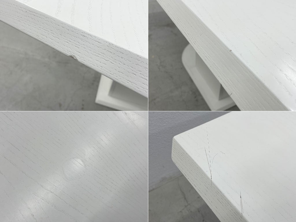 天板には画像の通り、角に打痕や傷、テーブルトップには輪染みやライン傷などがございます。