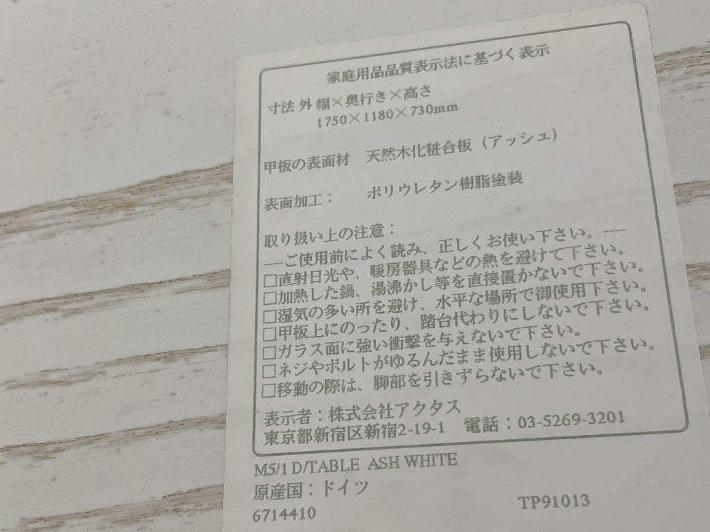 テクタ TECTA M5/1 ダイニングテーブル アッシュ材 ホワイト バウハウス ステファン・ヴェヴェルカ アクタス ACTUS取扱 廃盤 約30万円 〓