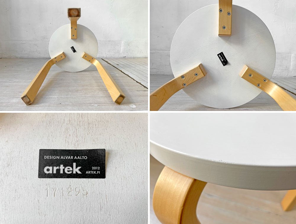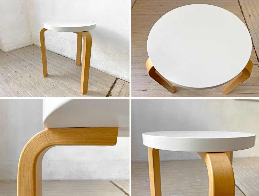 アルテック artek スツール60 Stool60 バーチ材 3本脚 ホワイトラッカー アルヴァ・アアルト 北欧家具 ★