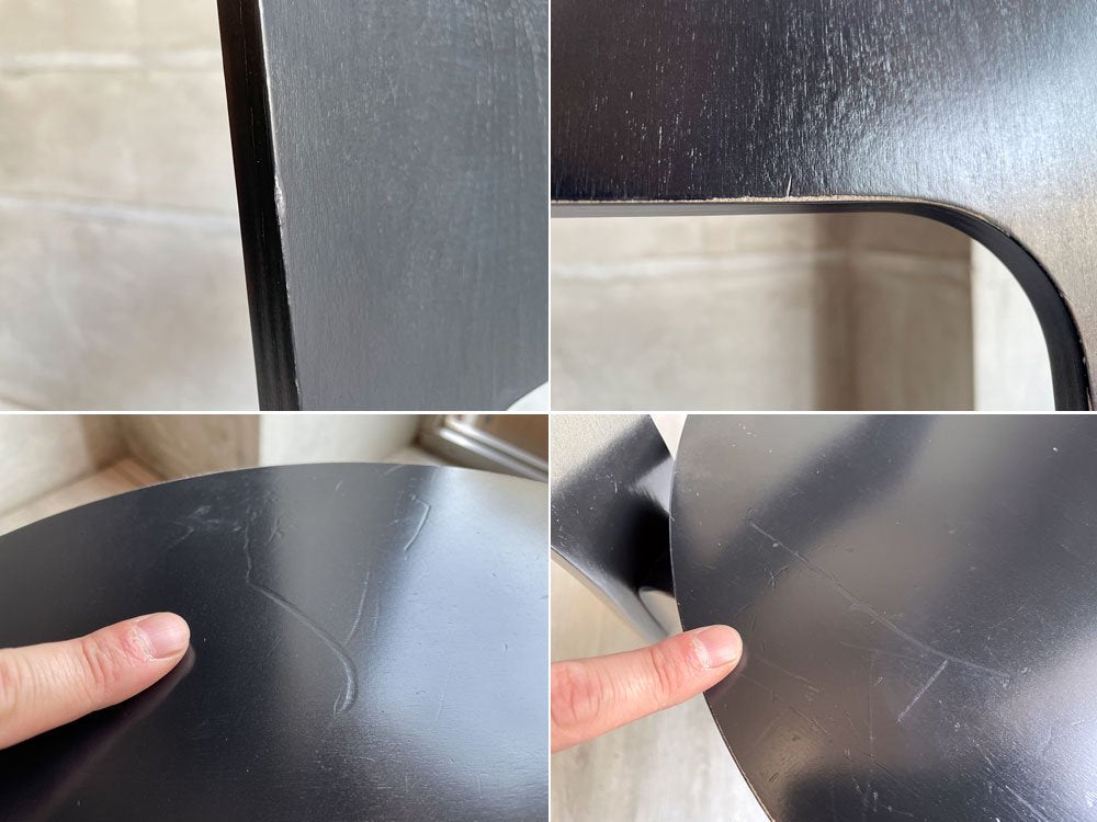 ペイントロスを伴う打痕が散見されるほか、座面に線傷がございます。そのほか、全体に細かな擦り傷が見られるものの、着座においての不具合は無く、概ね良好なコンディションを保っております。