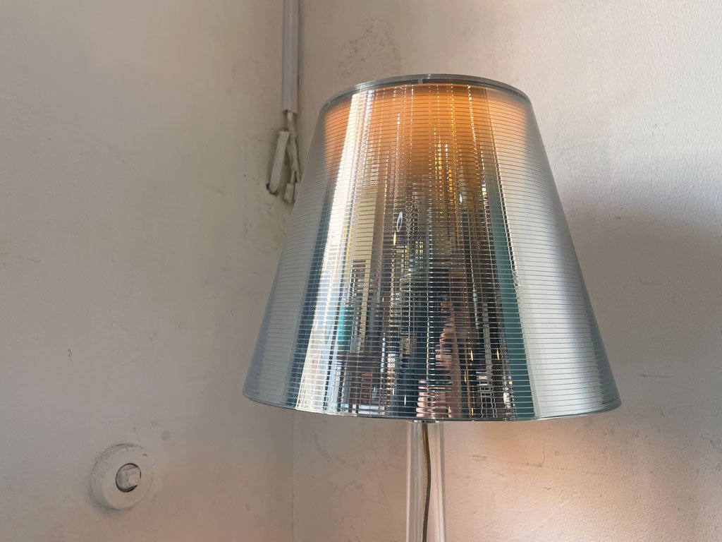 デザインはパリ生まれの巨匠フィリップ・スタルク。ポリカーボネートを使用していて、モダンで軽快な印象を与えてくれます。フレームには薄いアルミを蒸着。繊細なラインが走るメタリックなシェードはお部屋の良いアクセントとなってくれそうです。