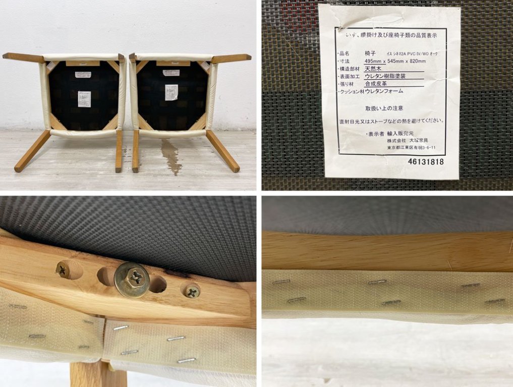 IDC大塚家具 OTSUKA シネマ2 Aタイプ ダイニングチェア オーク無垢材 PVCシート ファブリック座面カバー付き 2脚セット A ●
