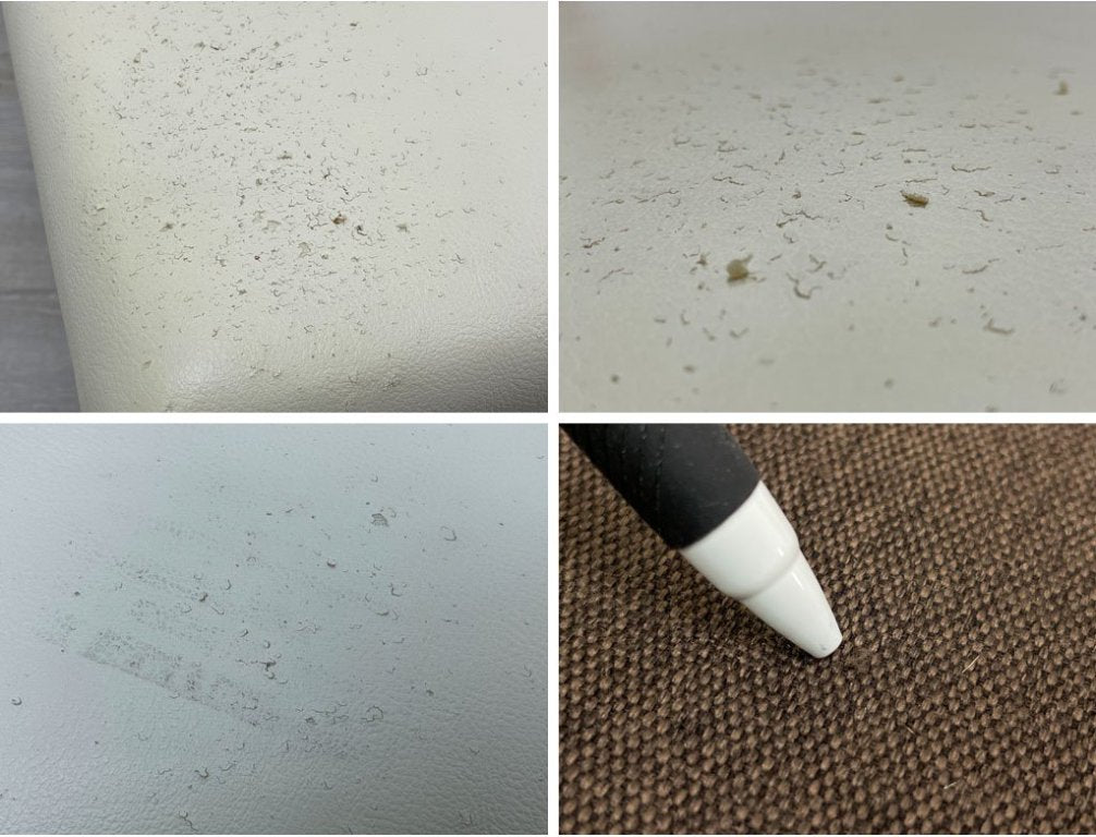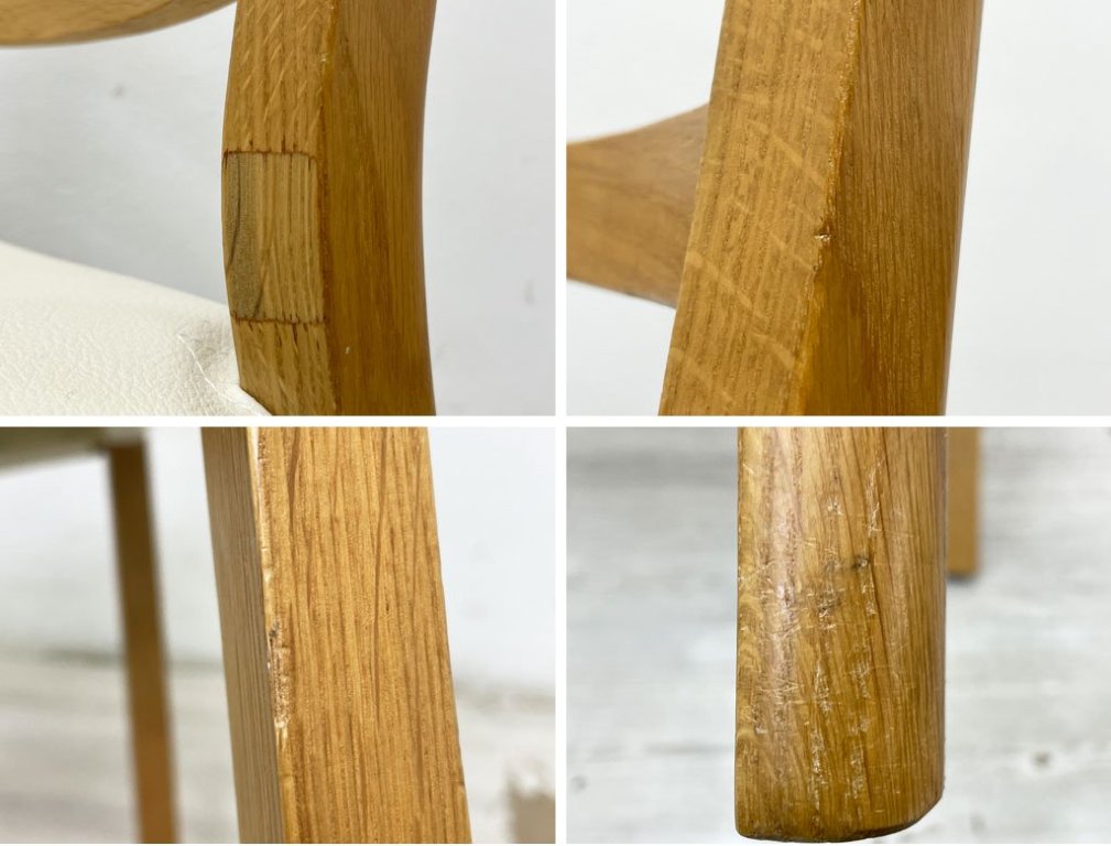 使用に伴う擦れや小傷、レタッチ痕の他、フレーム部分に一箇所テープ跡がございます。また、ファブリックには若干のほつれや引っ掛け跡、レザーには汚れと黄ばみ、ヒビ割れに伴う小さな破れが全体的にございます。使用感はございますが、グラツキ等の不具合はございません。