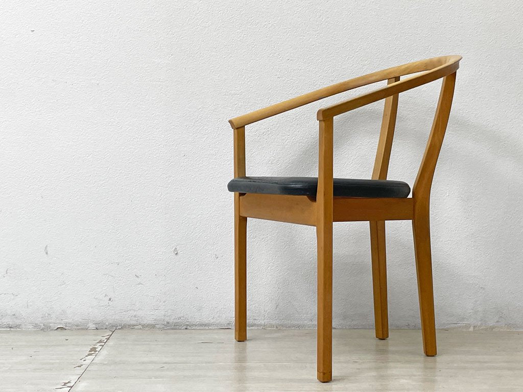 キルピングス モベルファブリック Kyrpings Mobelfabrik U-55 アームチェア P.Verner ビーチ材 本革 デンマーク 北欧ビンテージ ●