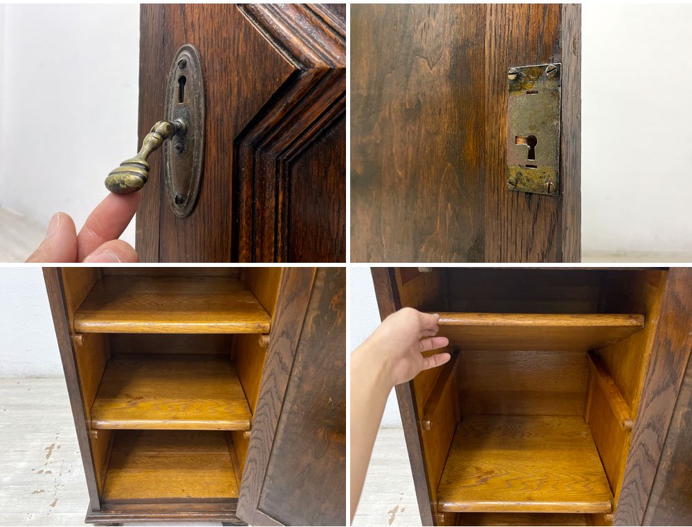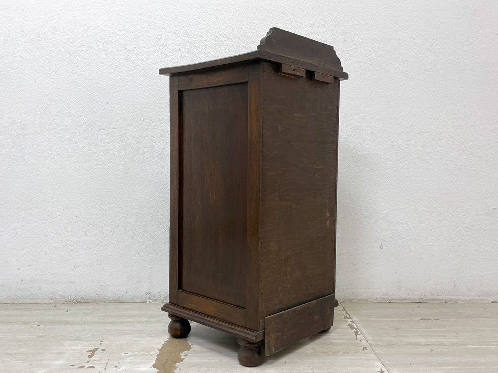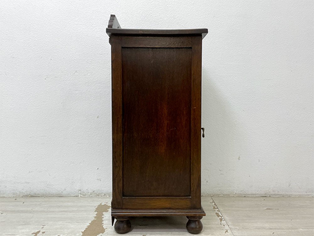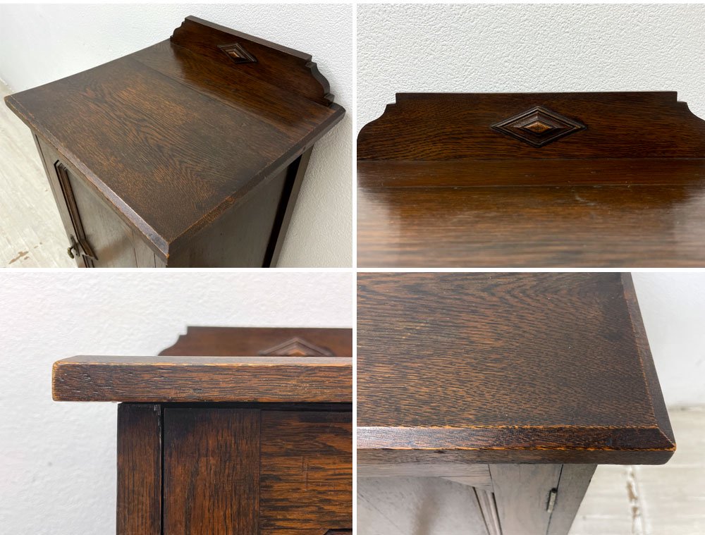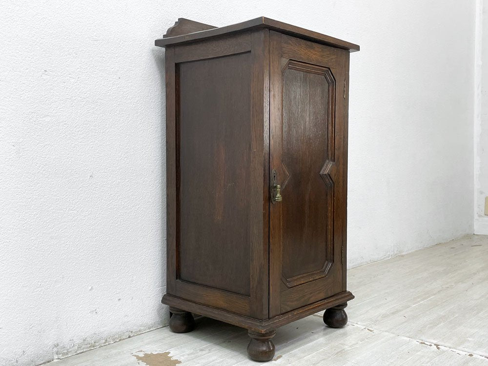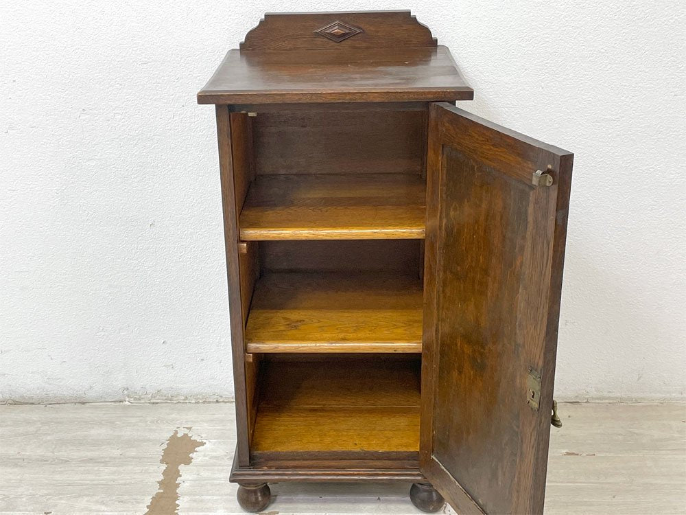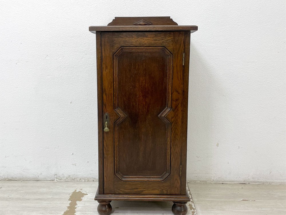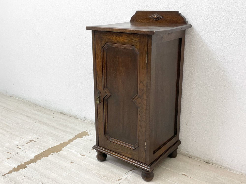 UKビンテージ Vintage サイドキャビネット 電話台 花台 オーク無垢材 片開き 菱形装飾 ボールレッグ 40-50's 英国家具 ●