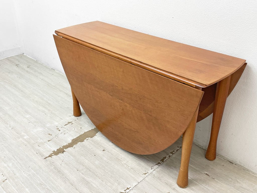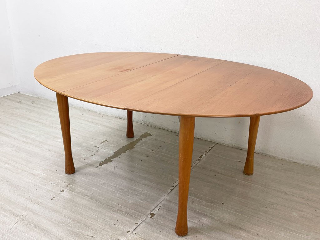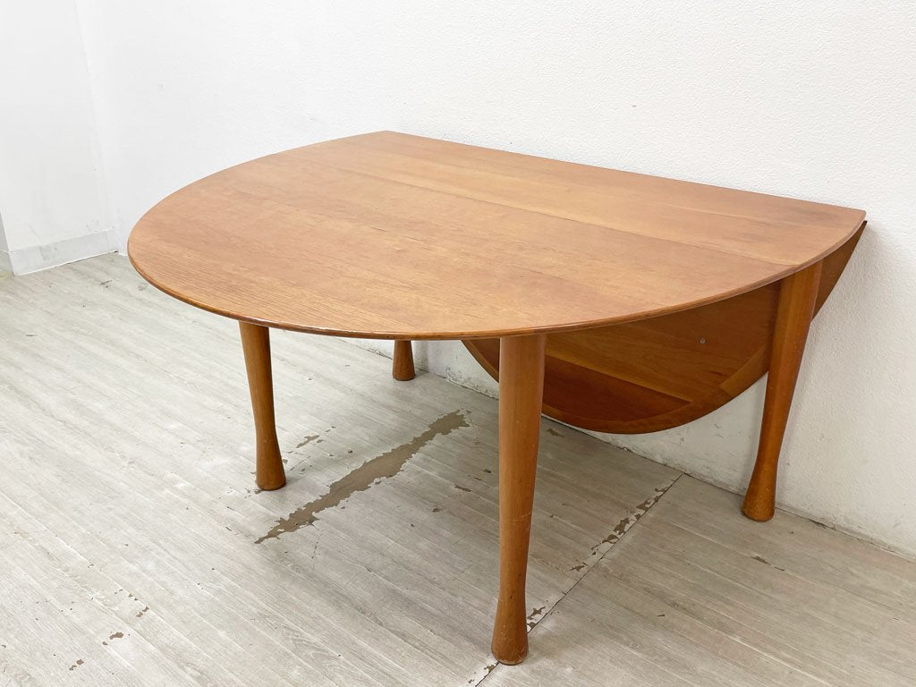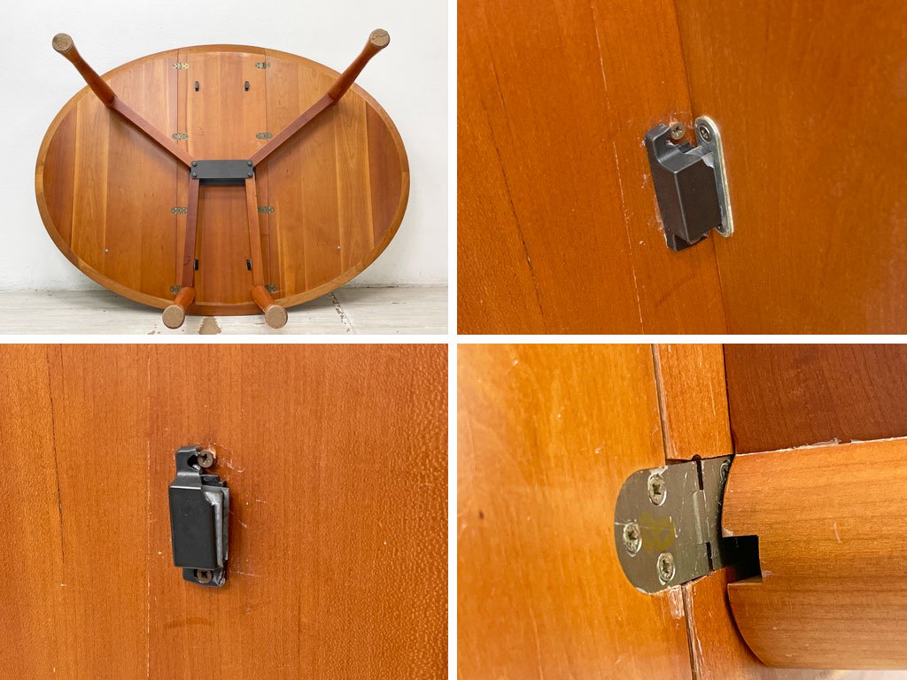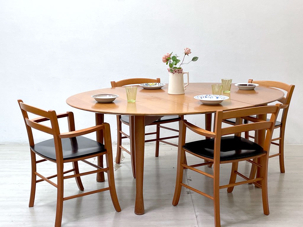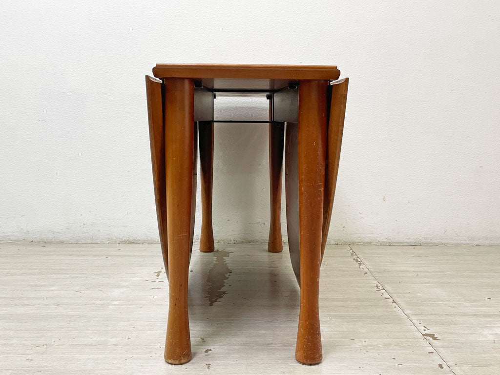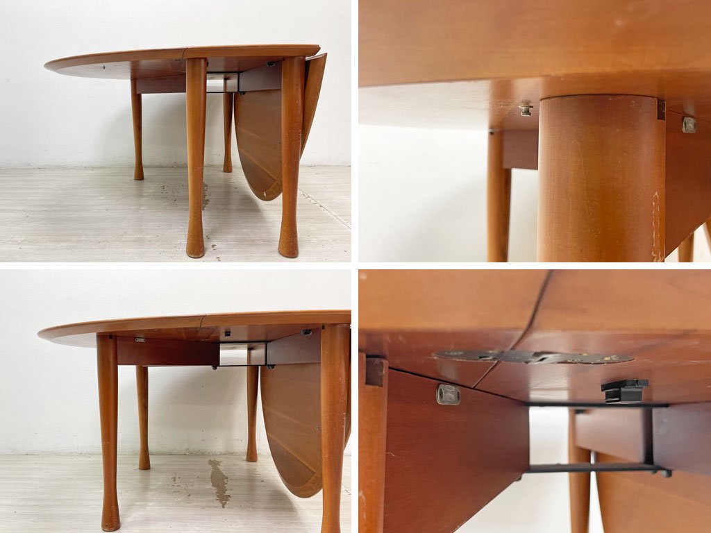 こちらはイタリアデザイン界を牽引する巨匠ヴィコ・マジストレッティによりデザインされた80年代ビンテージ『 ベイブ Babe 』になります。赤みを帯びたブラウン色のウッドフレームが温かみあるダイニング空間を演出。また楕円型天板と曲線を描く脚部がお部屋を柔らかく印象付けます。バタフライ式なので、床を広々使いたい時等は幅45cmに畳む事ができ、また片側を畳み壁付けする使い方も可能です。両側を広げると幅177×奥行130cmの広々としたサイズ感に。ファミリーでのご使用に最適です。