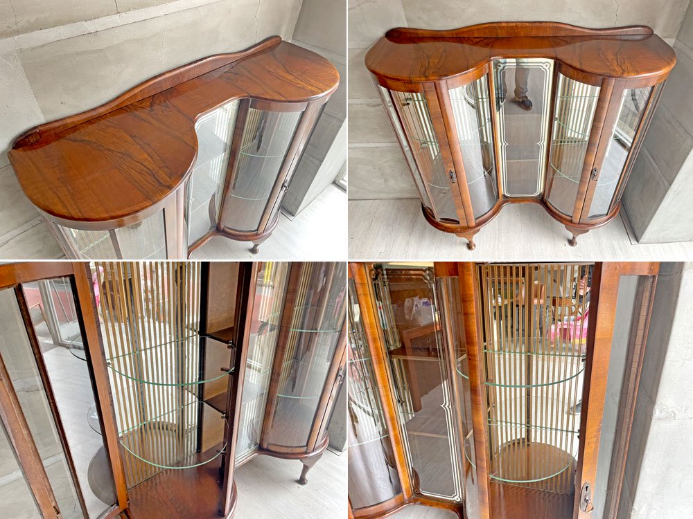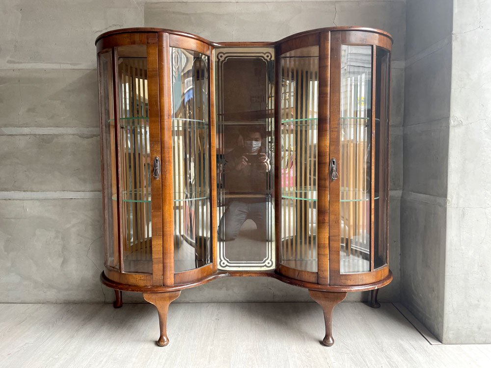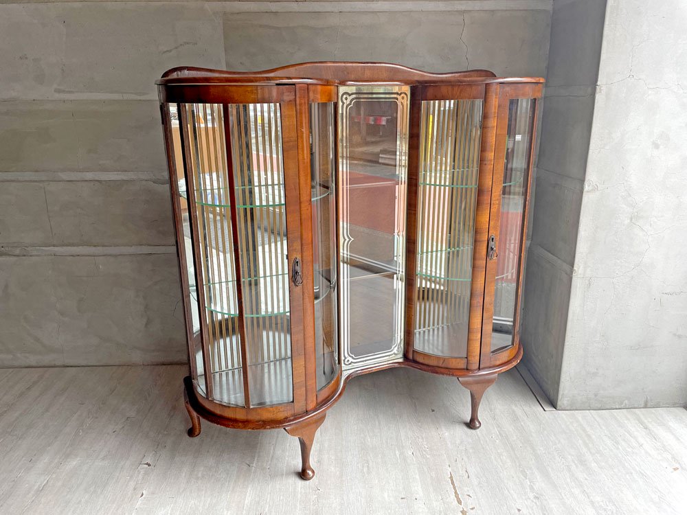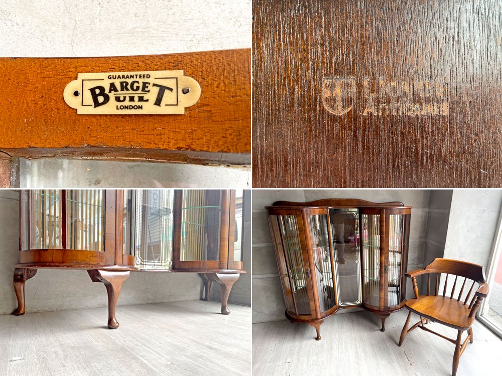 UKビンテージ BARGET UIL LONDON ガラスキャビネット キュリオケース チャイナキャビネット 飾り棚 猫脚 ロイズ・アンティークス Lloyd’s Antiques 焼印有 ♪