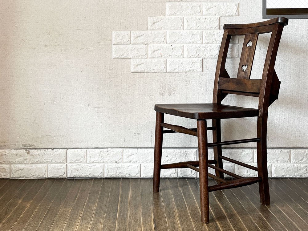 年々希少になりつつあるビンテージのチャーチチェア。中でもクローバーモチーフはなかなか出会うことのできないキュートなデザインです。