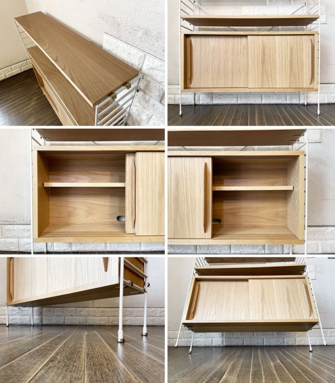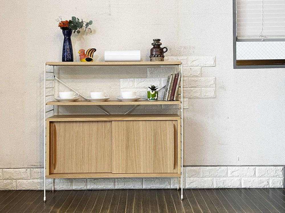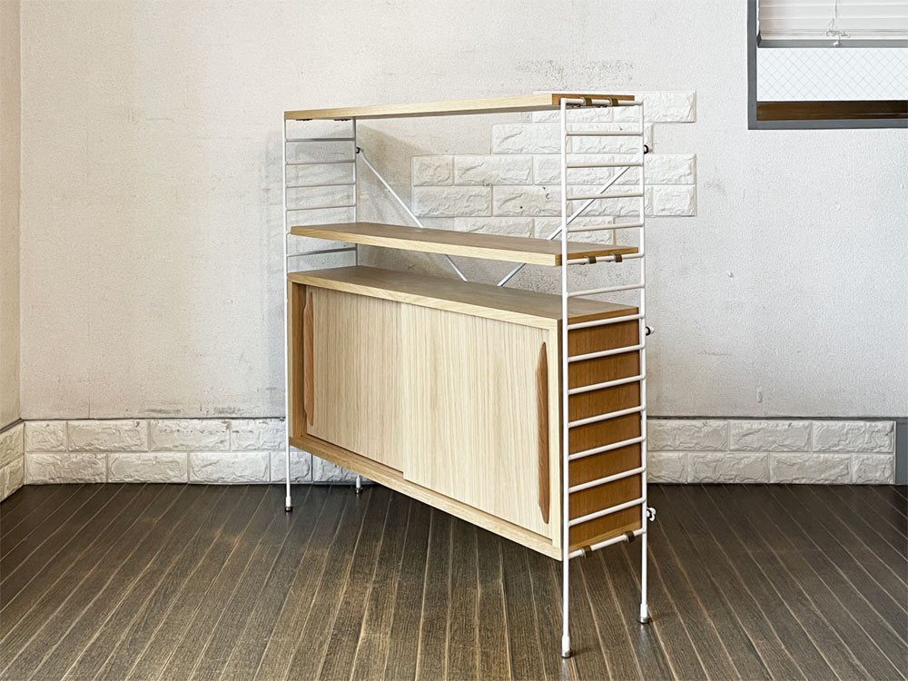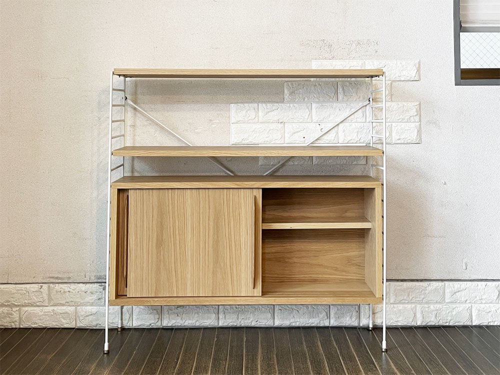 リセノ Re:CENO ラス R.U.S ウッドキャビネット 薄型 オーク材 ホワイトフレーム W91cm ユニットシェルフ 定価¥54,600- ◎