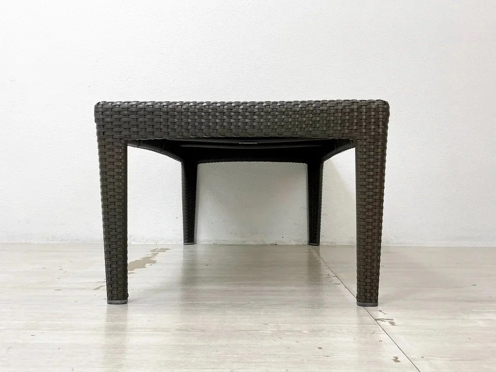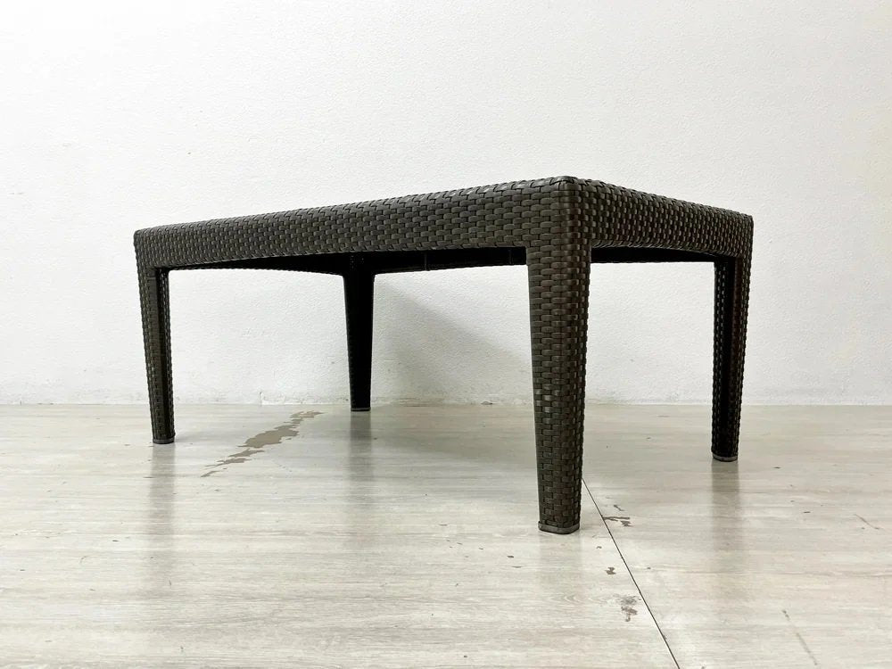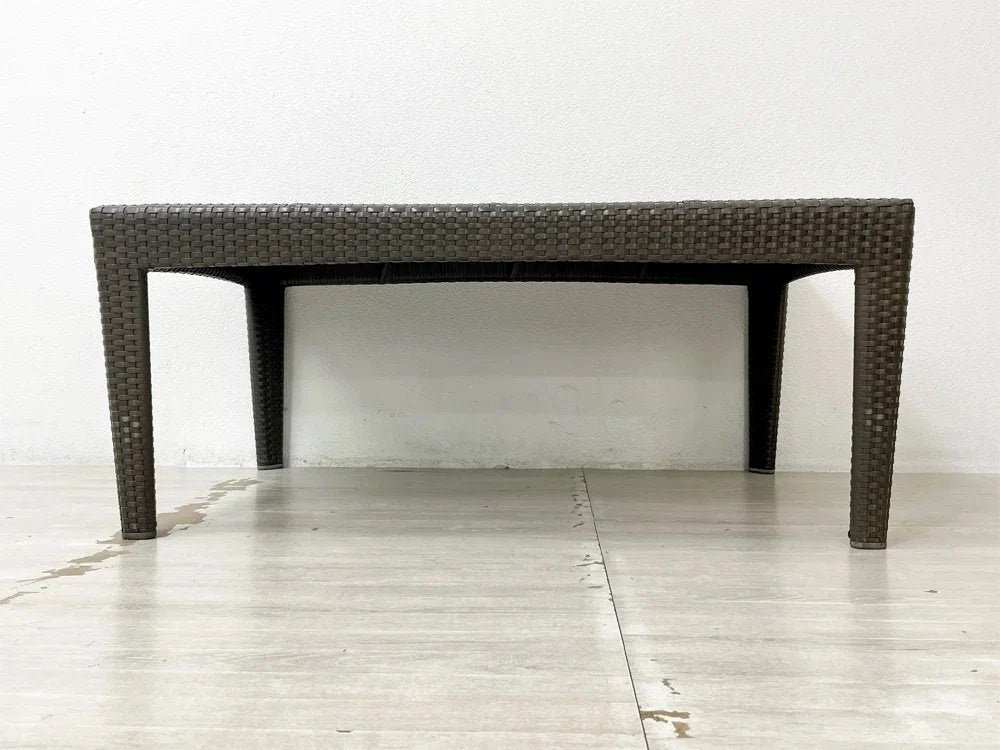 こちらはアルミフレームにポリスチレン樹脂を編み込み作られたセンターテーブル。お持ちのガーデンチェアやガーデンソファと合わせて天気の良い日はゆったりとお庭やベランダでくつろぐ事が出来ます。