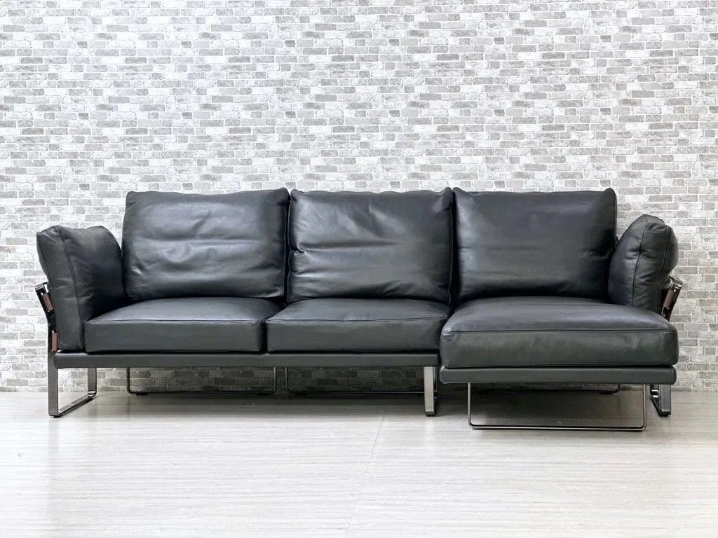 フェンディカーサ FENDI CASA メトロポリタン Metropolitan カウチソファ 2シーター + シェーズロング フェザークッション 牛革 大型 高級家具 イタリアモダン ●