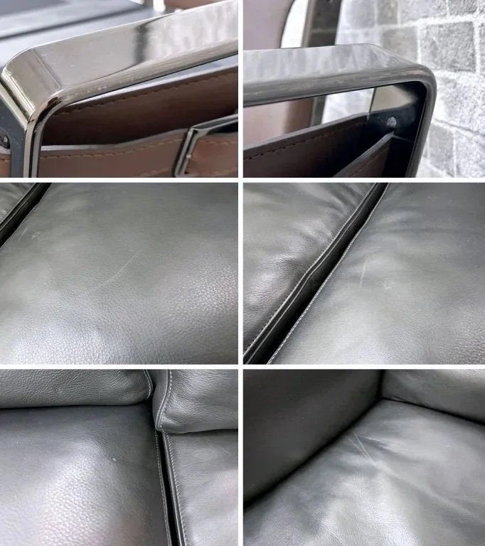 クッションやシートに線傷や擦れ、圧痕が複数あり、フレームサイドのレザーベルトにも同様の傷が複数箇所ございます。