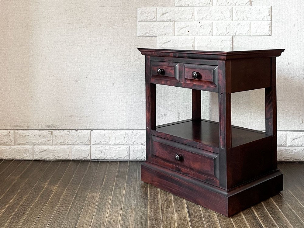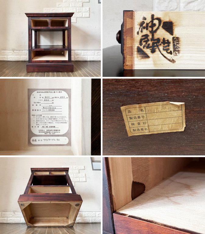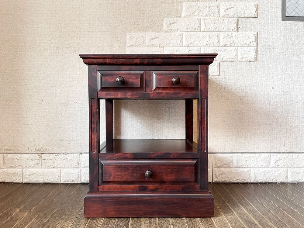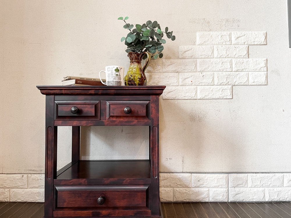 こちらは、樺材を使ったナイトテーブル。民芸家具らしい美しい佇まいをお楽しみ頂ける1台です。