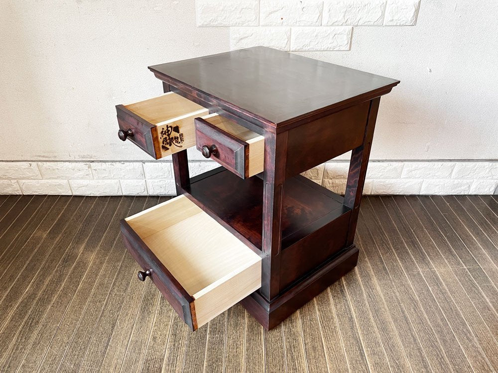 神居民芸 カムイ KAMUI ナイトテーブル サイドキャビネット W50cm 樺材 抽斗3杯 北海道 民芸家具 和家具 和光社 ◎