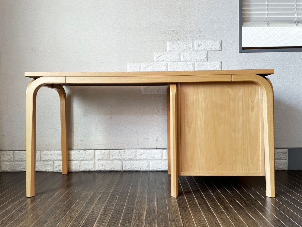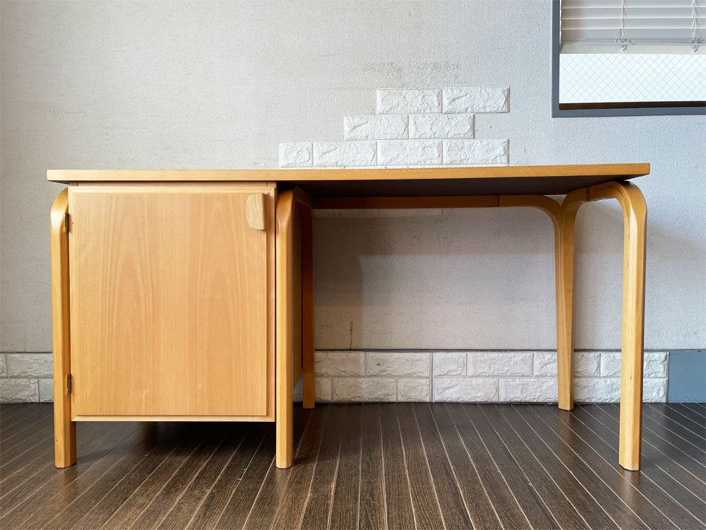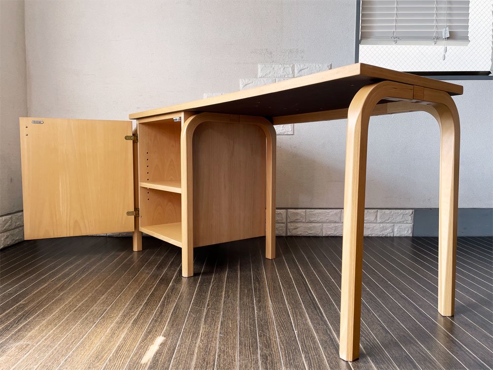 なお今回はキャビネットタイプの収納を備えた片袖デスク。抽斗タイプに比べると、比較的流通数の少ない珍しい仕様です。