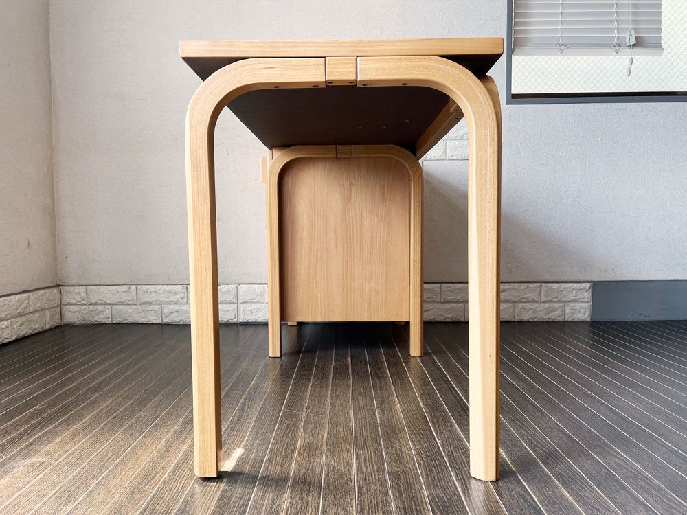 フレームには、明るくナチュラルなビーチ材が用いられ、ブルーグレー系のリノリウムとのコントラストが美しい逸品です。