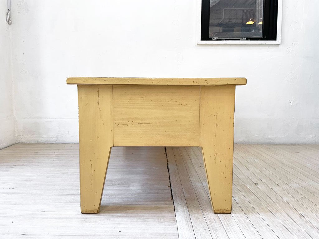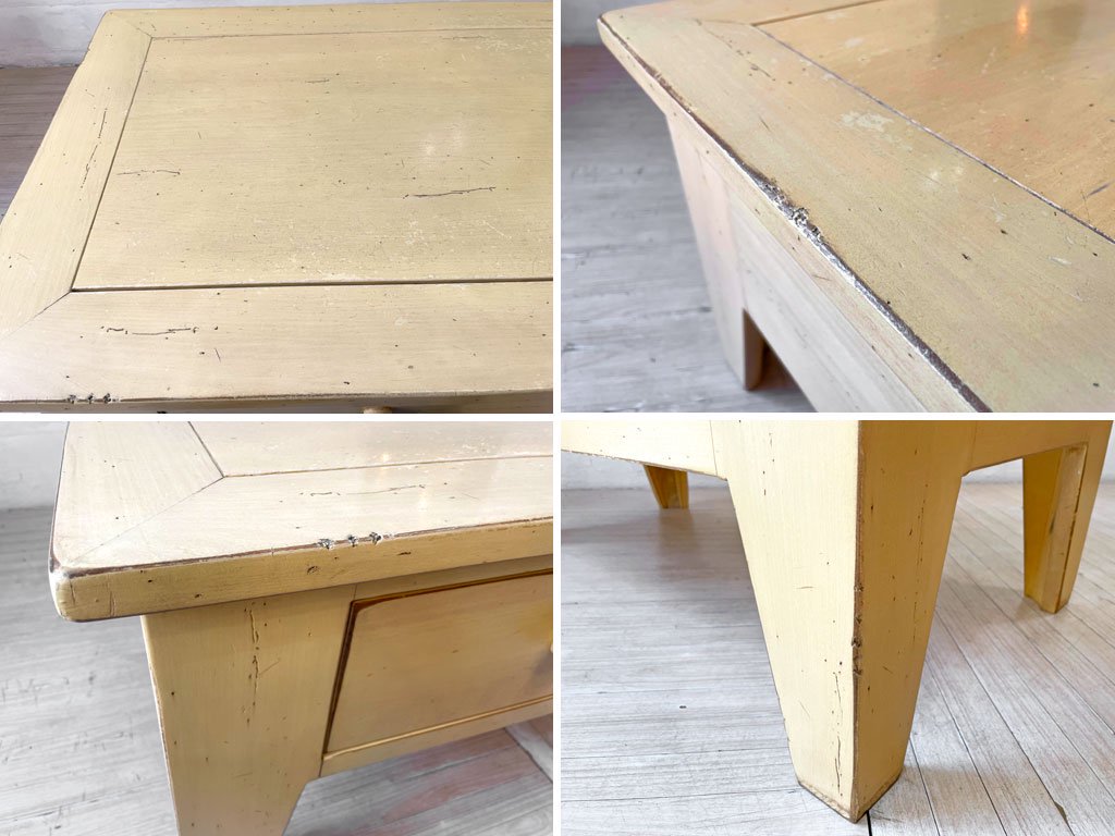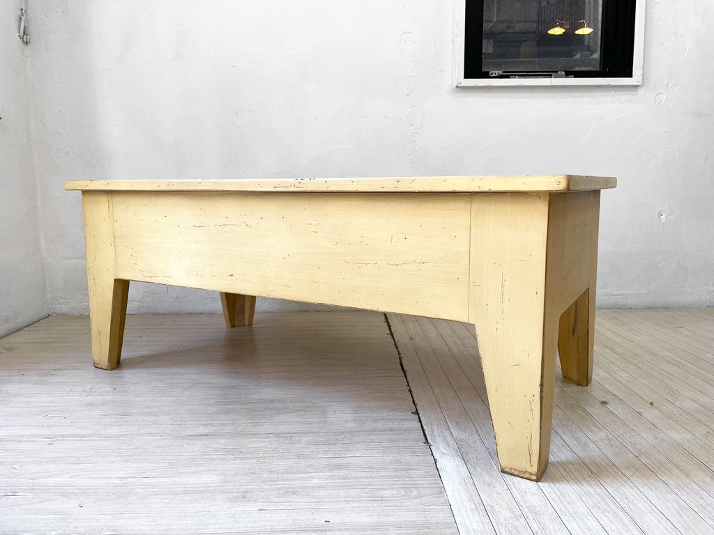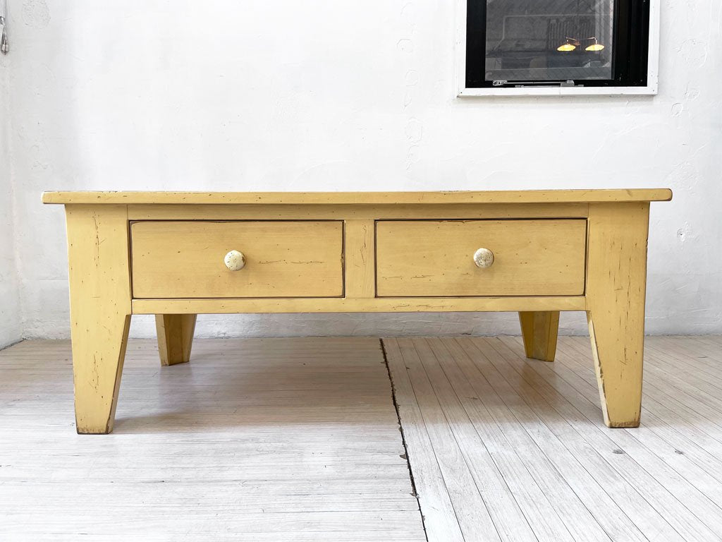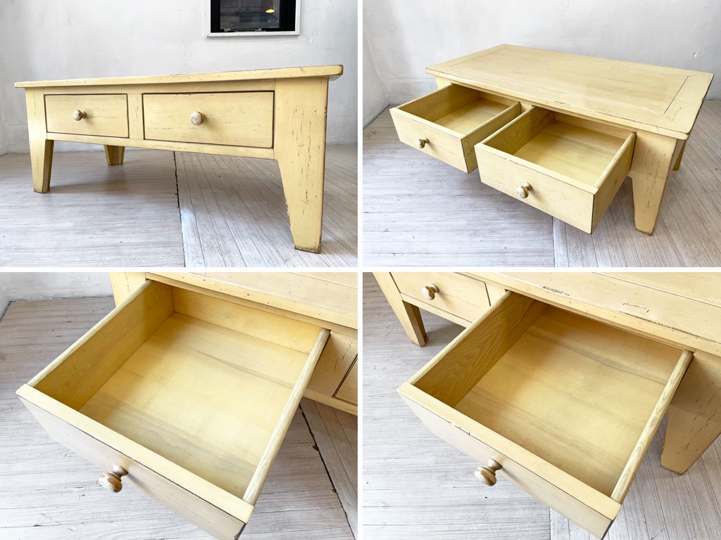 UKビンテージ ペインテッド ローテーブル センターテーブル コーヒーテーブル クリーム色 パイン無垢材 2ドロワー シャビーシック 英国カントリー 店舗什器 ★