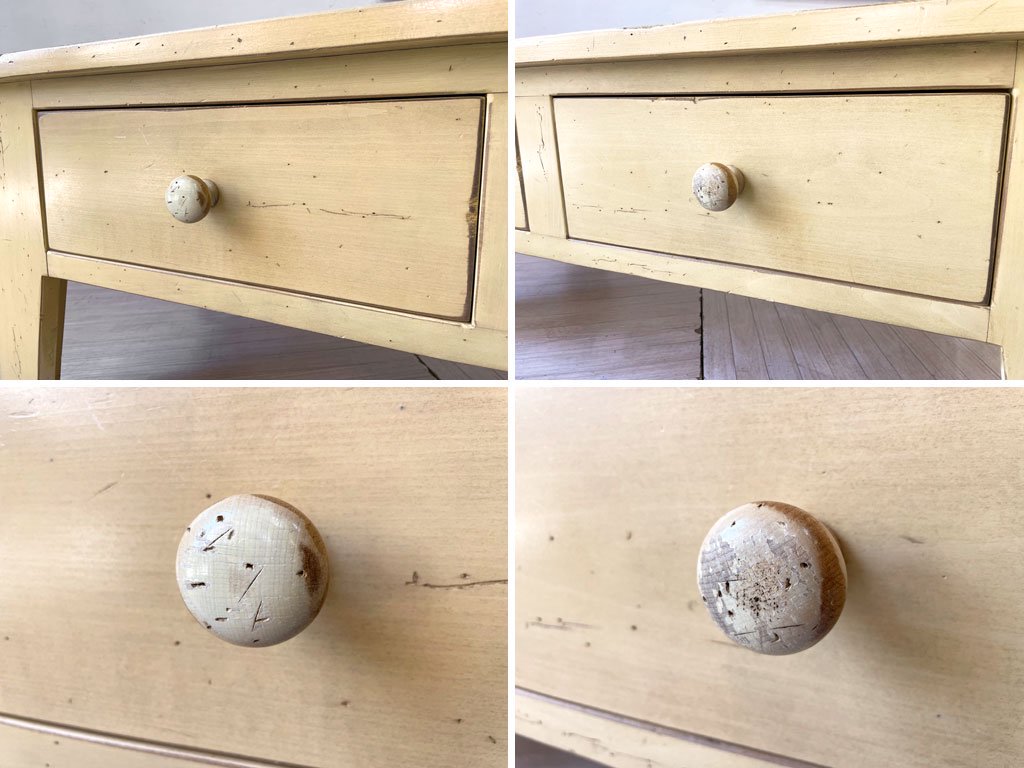 UKビンテージ ペインテッド ローテーブル クリーム色 パイン無垢材 2ドロワー