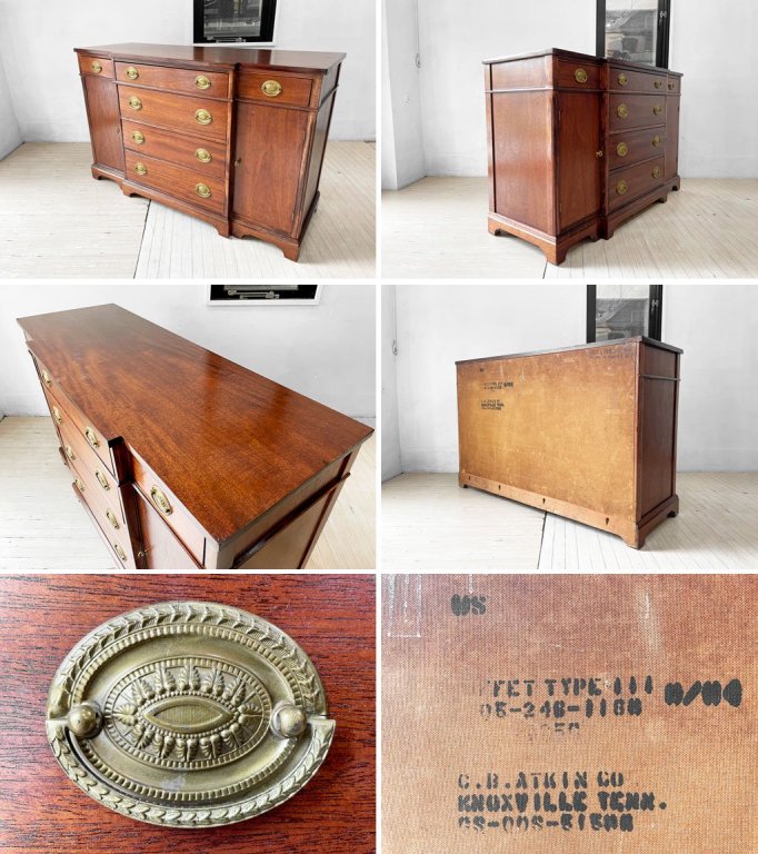 シー・ビー・アトキン カンパニー C.B.ATKIN COMPANY サイドボード ワイドキャビネット マホガニー 米軍家具 USビンテージ ★