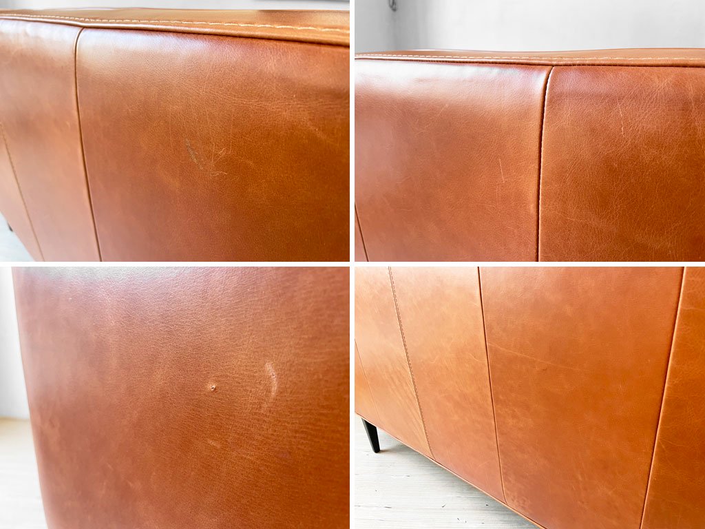 レザーに若干の傷や擦れ、ごく僅かな穴や本革特有のシワ、オイルレザー特有の色ムラなどがございますが、クッションのヘタリなども無く、大きく目立つようなダメージなどもございません。USED品として概ね良好なコンディションを保っております。