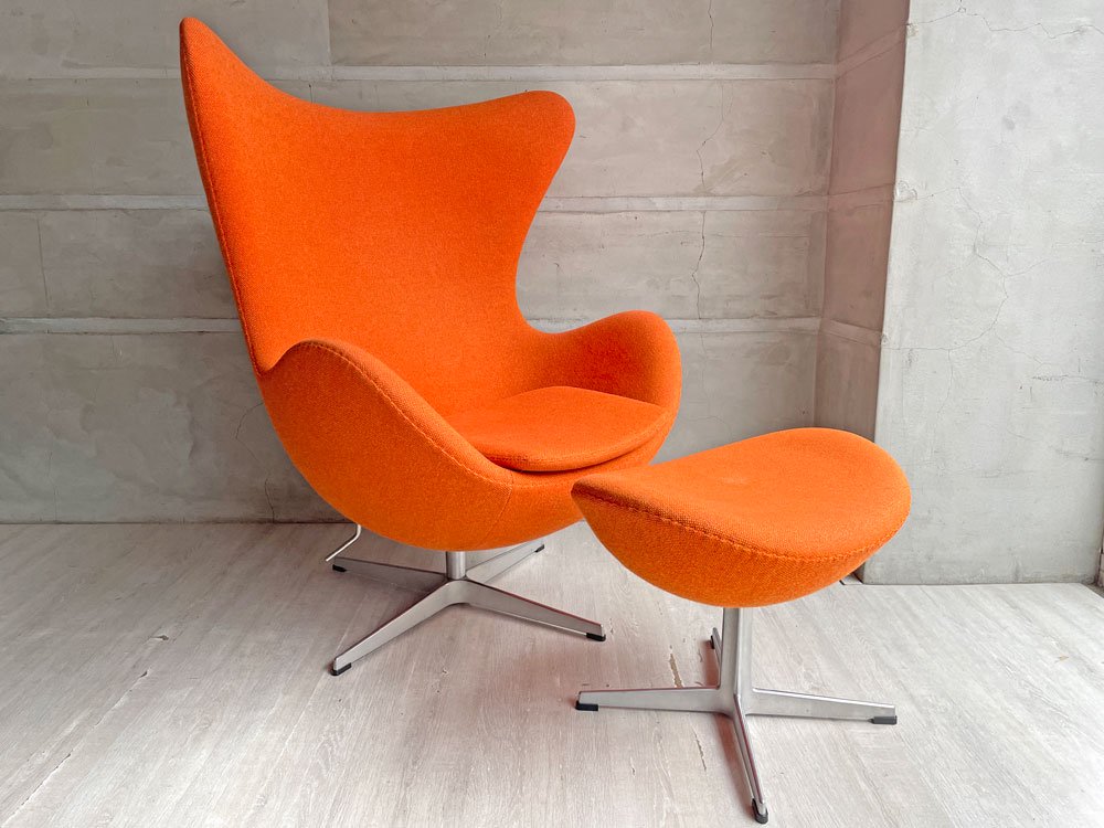 フリッツハンセン Fritz Hansen 3316 エッグチェア オットマンセット ラウンジチェア アルネ・ヤコブセン オレンジ ファブリック 北欧 名作椅子 ♪