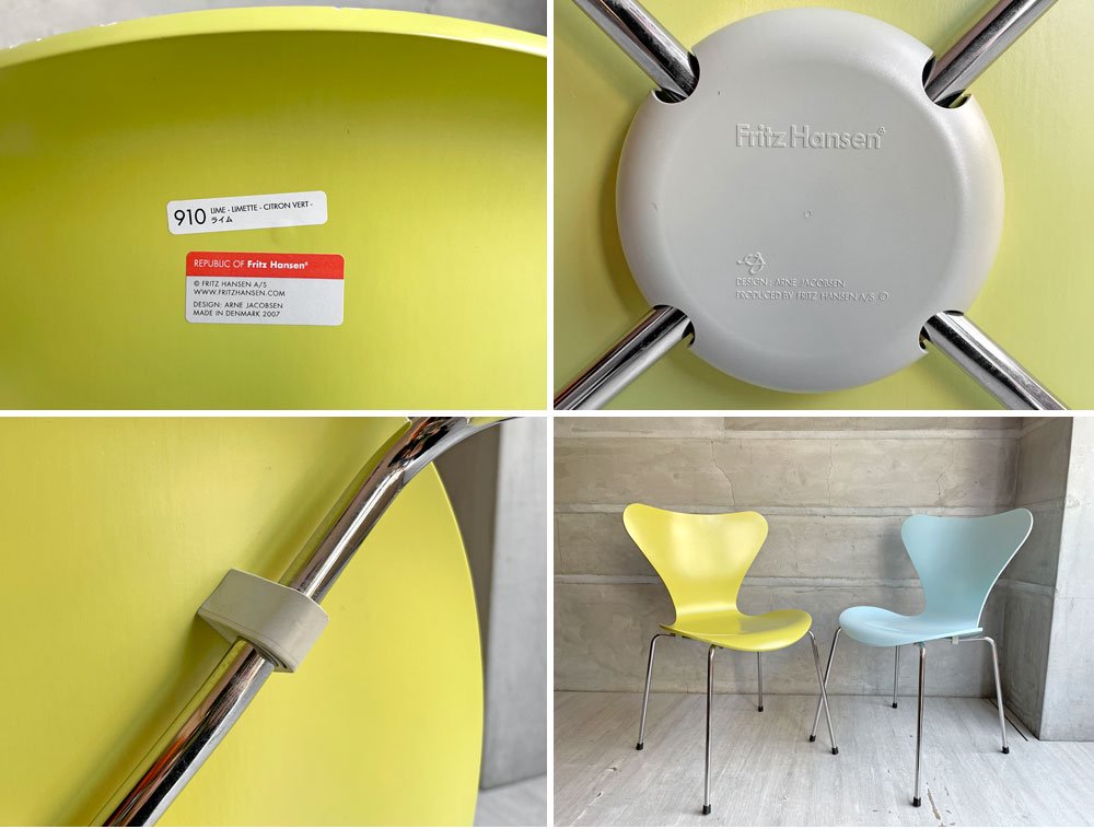 フリッツハンセン Fritz Hansen セブンチェア アルネ・ヤコブセン Arne Jacobsen スタッキングチェア ダイニングチェア アイスブルー&ライム 廃番カラー デンマーク 北欧 ~重なり合う曲線~