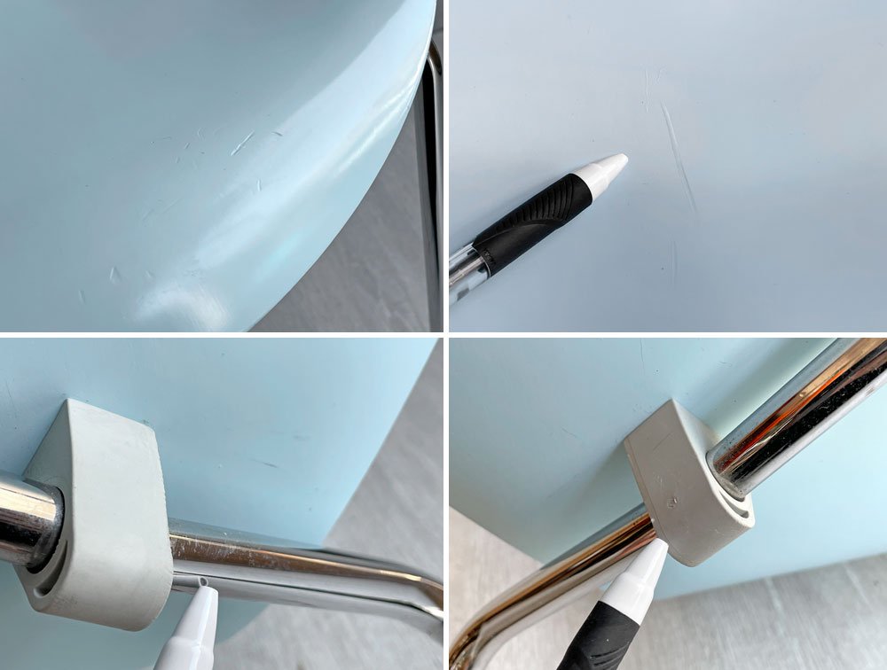 使用に伴い、擦れや打痕、それらによるペイントロスが見受けられます。また脚部には若干の錆やくすみがございますが大きく目立つものではございません。その他グラつき等大きなダメージ無く、これからも実用頂けるコンディションを保っております。