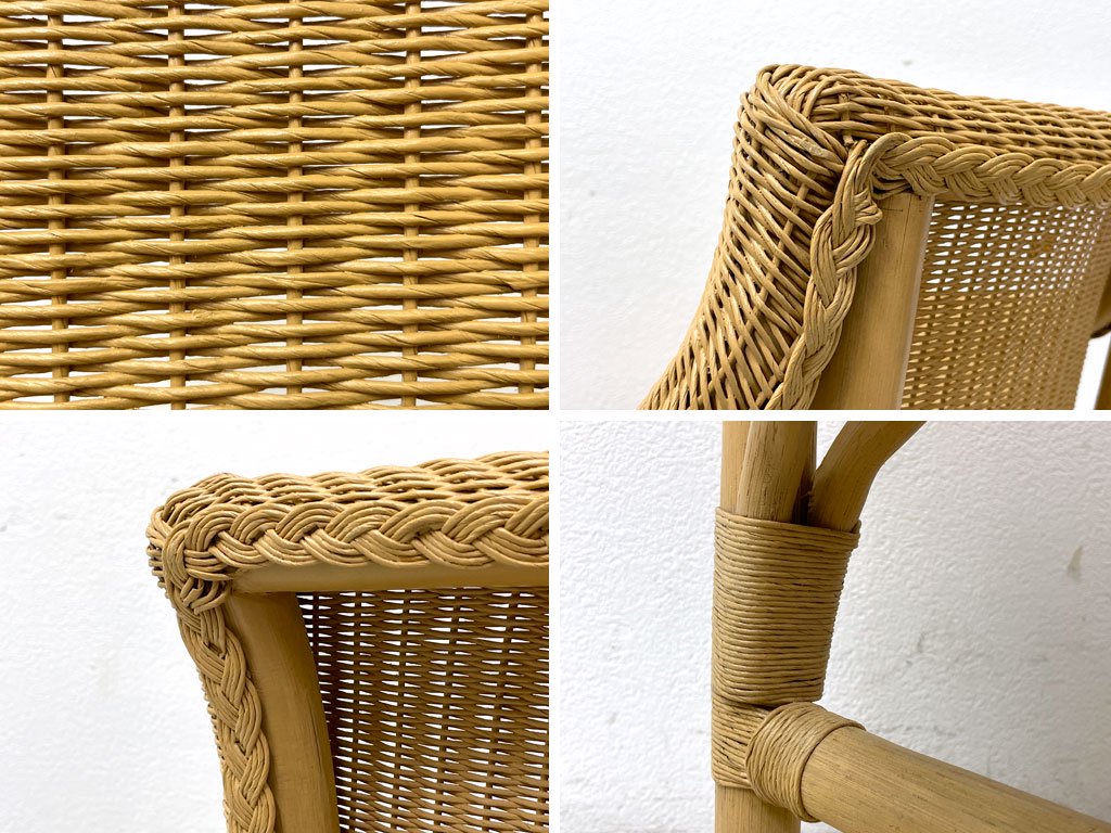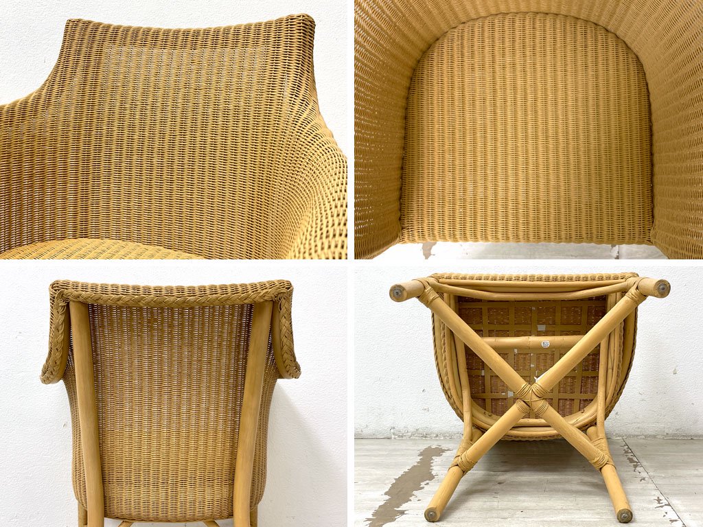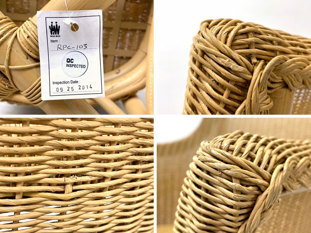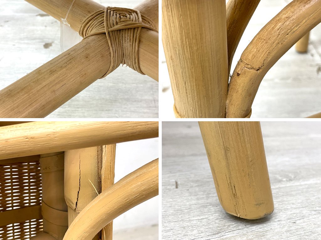 細かな擦れや小傷、若干の染みがございます。ラタンには色ムラや素材特有の亀裂がございますが、強度に問題となる様なものではございません。比較的使用感が少なく、美品と呼べるコンディションを保っております。