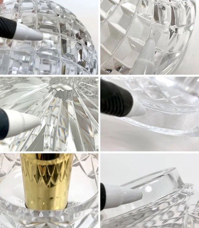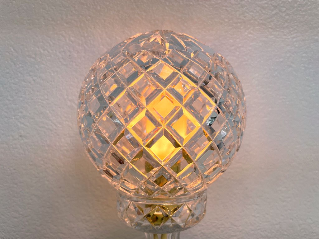 カットの入ったボール型のクリスタルシェードは光を拡散、反射し美しい光を映し出します。