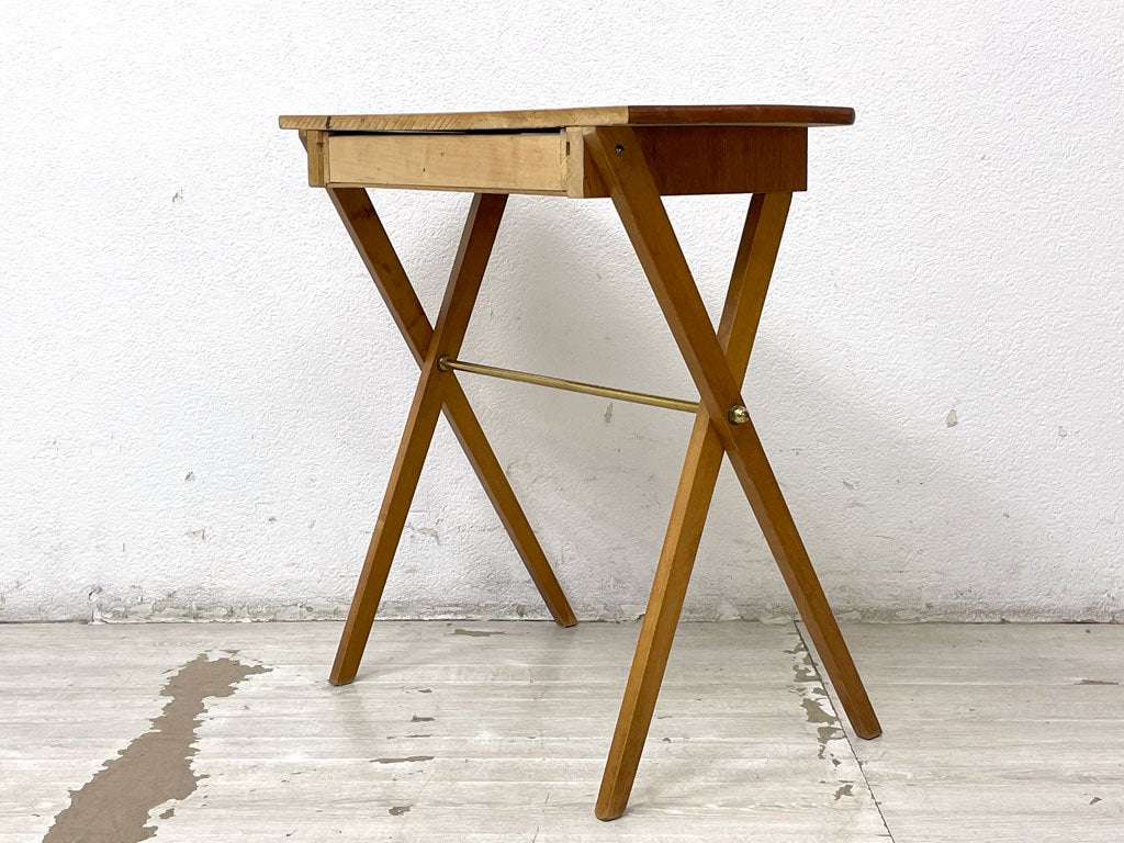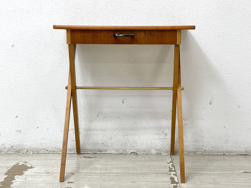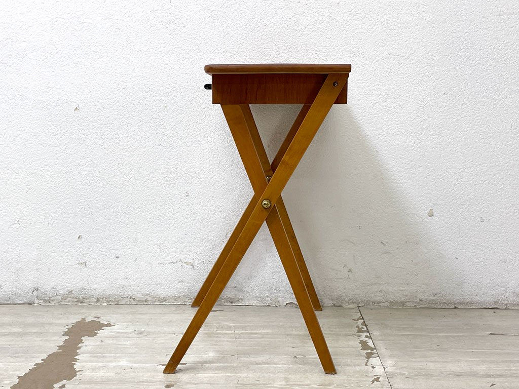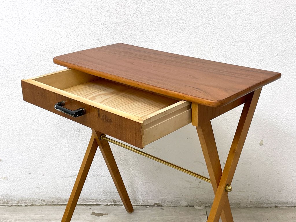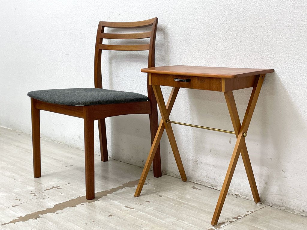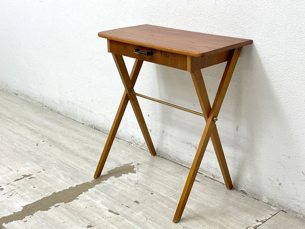 スウェーデンビンテージ Swedish Vintage チーク材 サイドテーブル ナイトテーブル コンソール クロスレッグ 北欧家具 ●